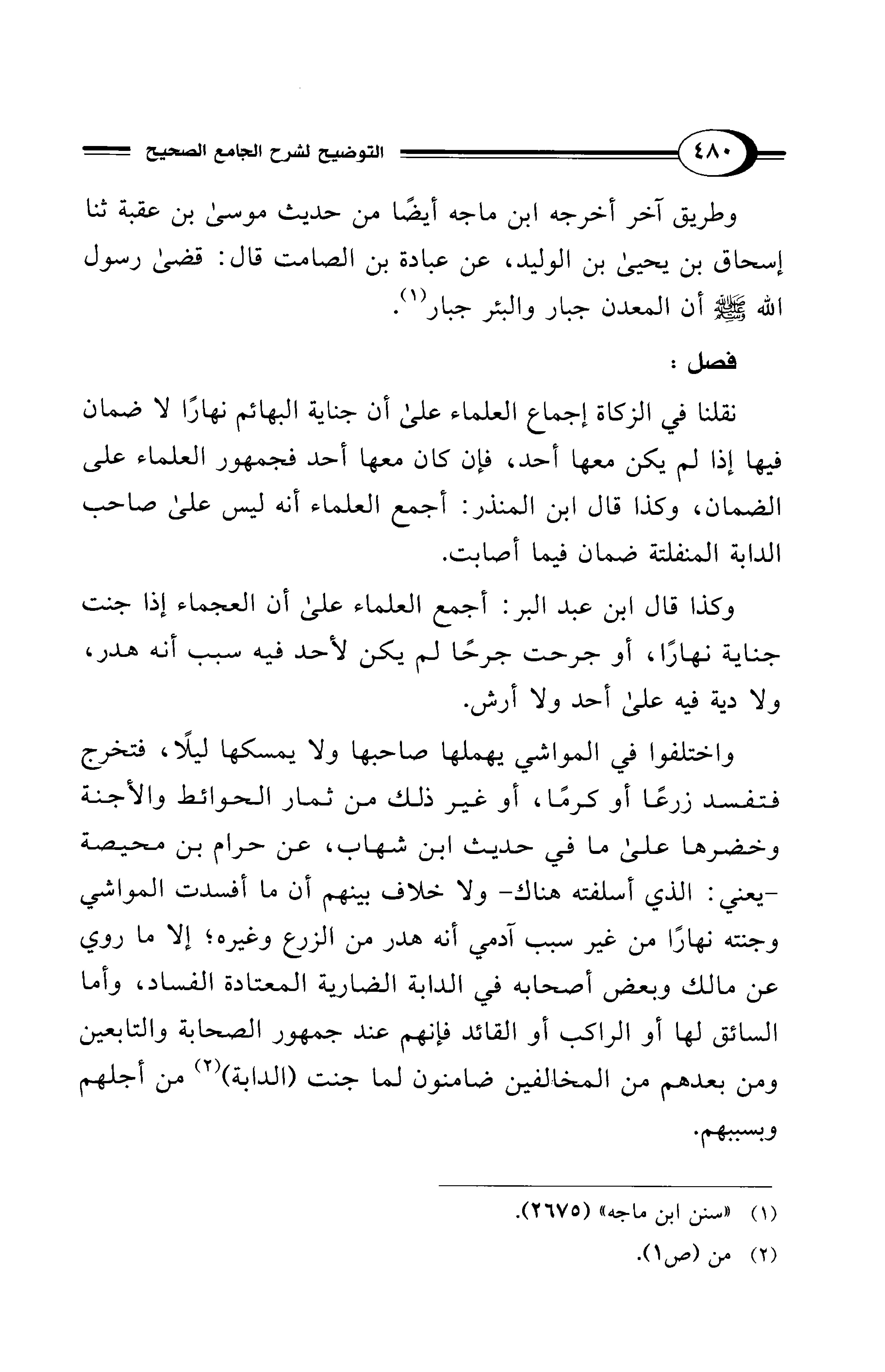 واختلفوا في المواشي يهملها صاحبها ولا يمسكها ليلاً، فتخرج فتفسد زرعًا أو كرمًا، أو غير ذلك من ثمار الحوائط والأجنة وخضرها على ما في حديث ابن شهاب، عن حرام بن محيصة -يعني: الذي أسلفته هناك- ولا خلاف بينهم أن ما أفسدت المواشي وجنته نهارًا من غير سبب آدمي أنه هدر من الزرع وغيره؛ إلا ما روي عن مالك وبعض أصحابه في الدابة الضارية المعتادة الفساد، وأما السائق لها أو الراكب أو القائد فإنهم عند جمهور الصحابة والتابعين ومن بعدهم من المخالفين ضامنون لما جنت (الدابة) (¬2) من أجلهم وبسببهم.