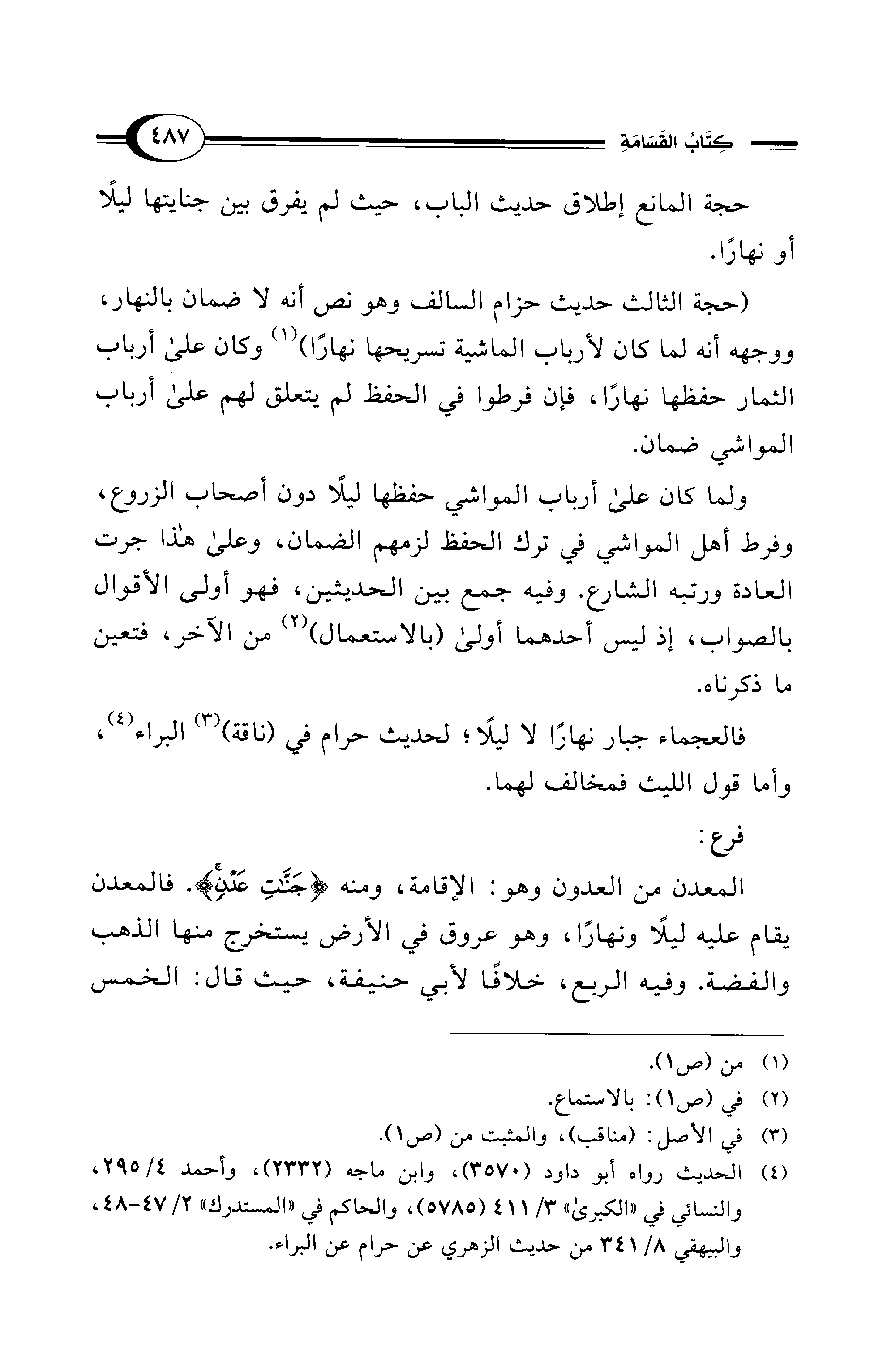 (¬4) الحديث رواه أبو داود (3570)، وابن ماجه (2332)، وأحمد 4/ 295، والنسائي في "الكبرى" 3/ 411 (5785)، والحاكم في "المستدرك" 2/ 47 - 48، والبيهقي 8/ 341 من حديث الزهري عن حرام عن البراء.
