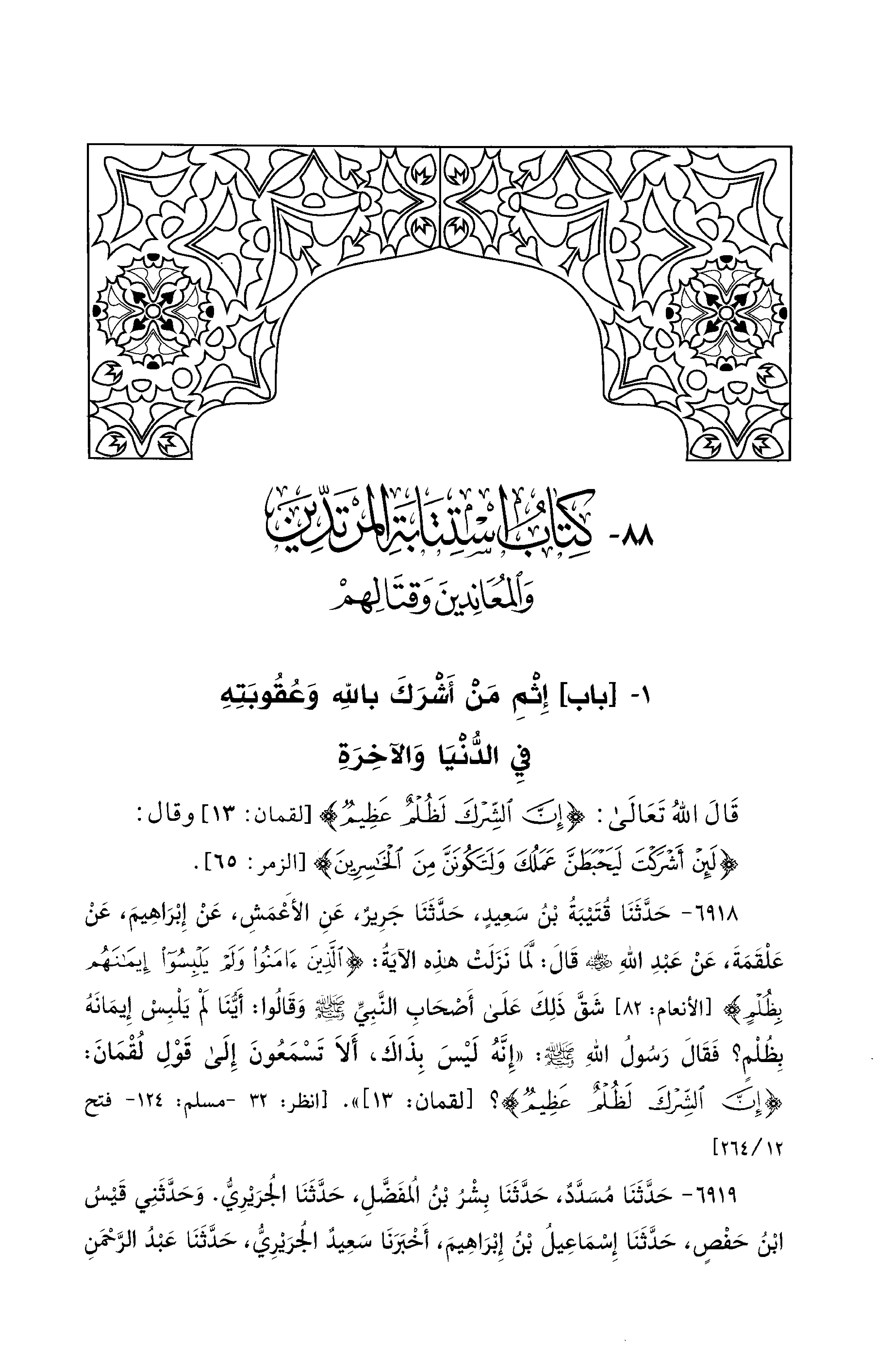 88 - كِتَابُ اسْتِتَابَةِ المُرْتَدِّينَ وَالمُعَانِدينَ وَقتَالِهمْ