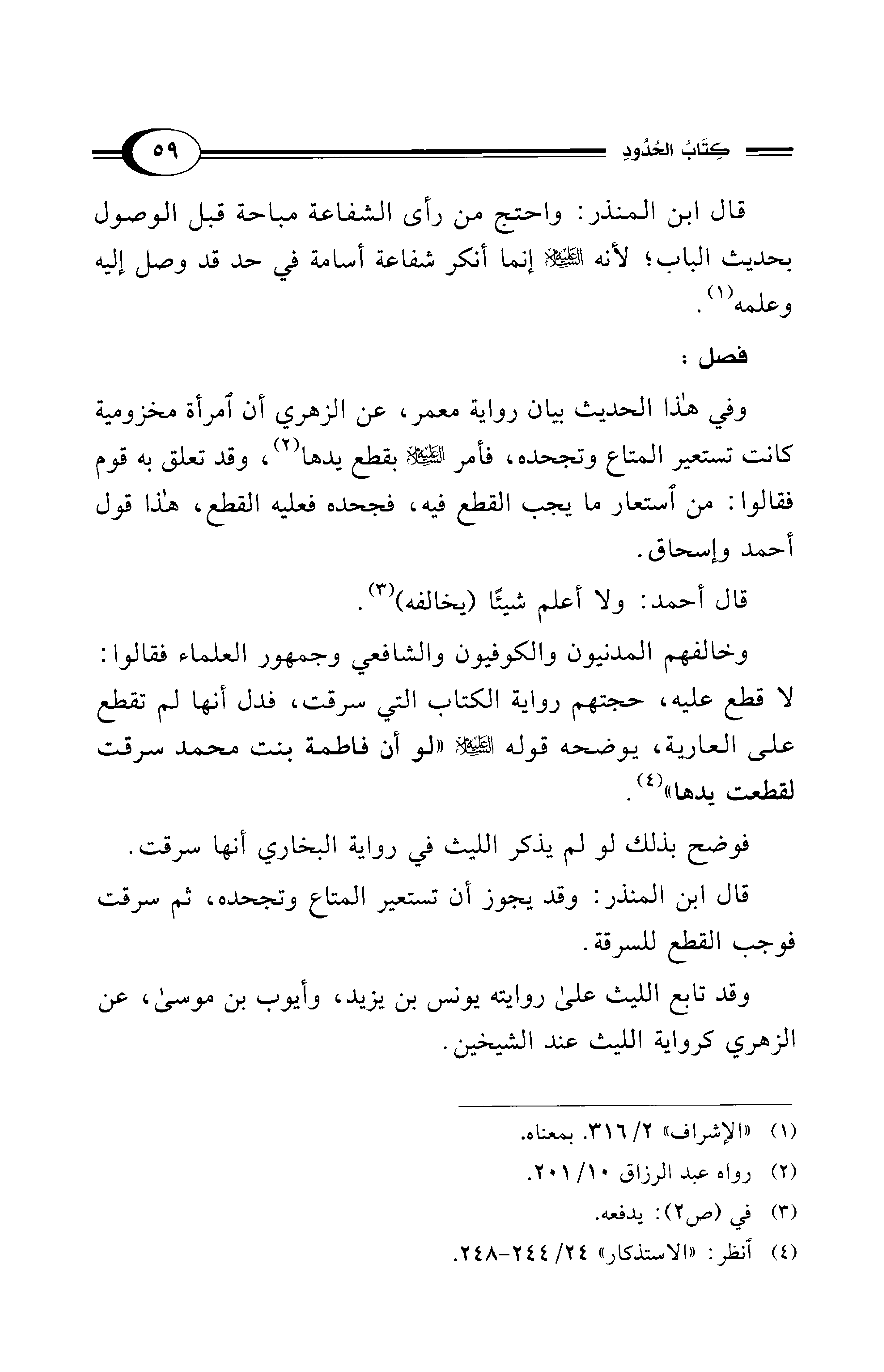 وخالفهم المدنيون والكوفيون والشافعي وجمهور العلماء فقالوا: لا قطع عليه، حجتهم رواية الكتاب التي سرقت، فدل أنها لم تقطع على العارية، يوضحه قوله - عليه السلام - "لو أن فاطمة بنت محمد سرقت لقطعت يدها" (¬4).