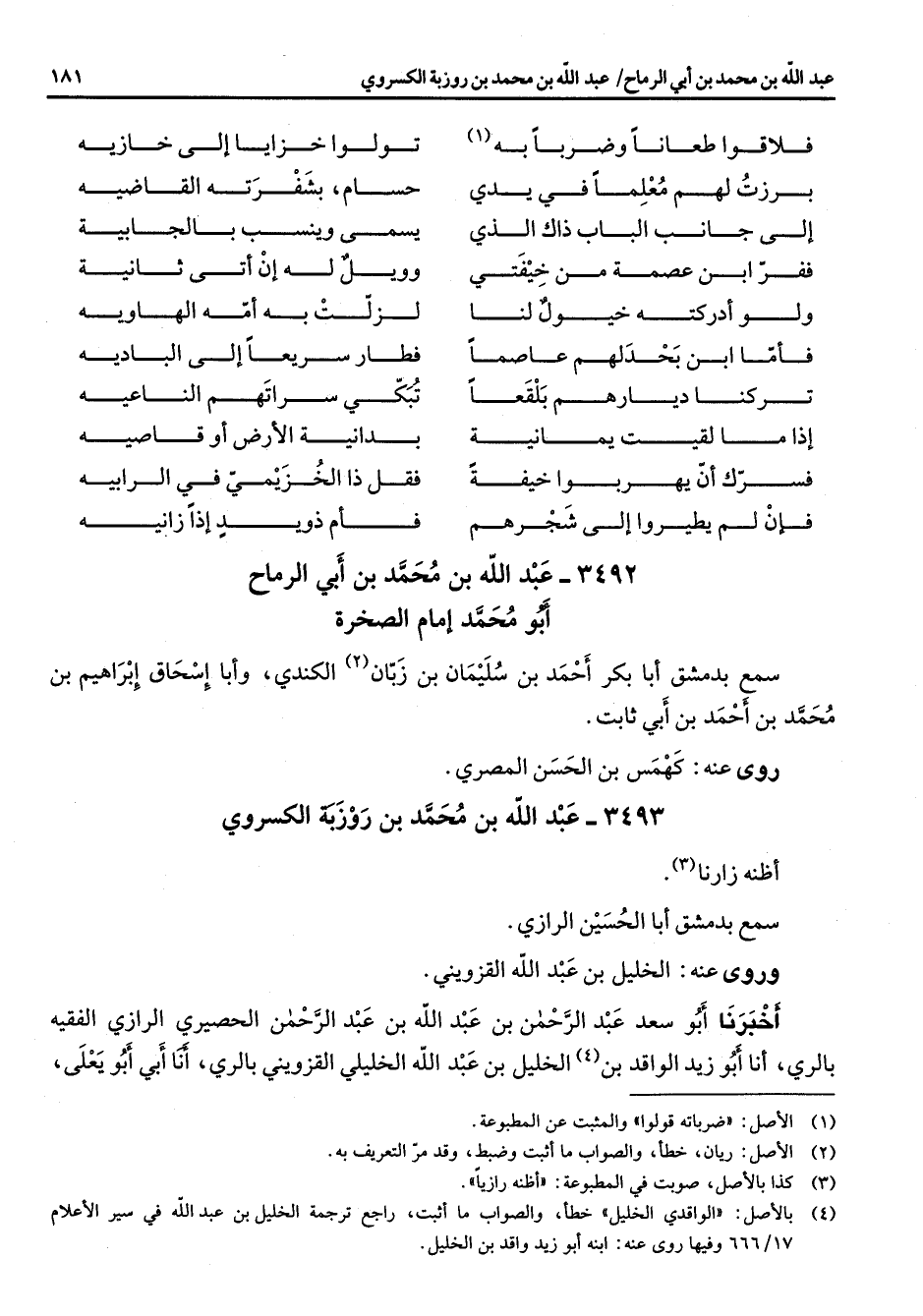(4) بالأصل: " الواقدي الخليل " خطأ والصواب ما أثبت راجع ترجمة الخليل بن عبد الله في سير الأعلام 17 / 666 وفيها روى عنه: ابنه أبو زيد واقد بن الخليل