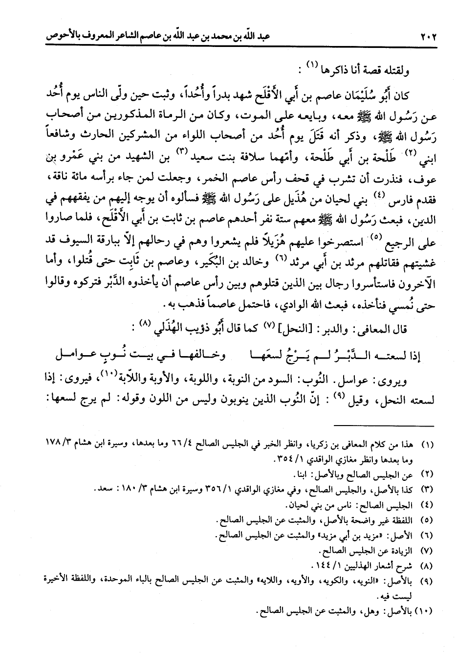 (1) هذا من كلام المعافي بن زكريا وانظر الخبر في الجليس الصالح 4 / 66 وما بعدها وسيرة ابن هشام 3 / 178