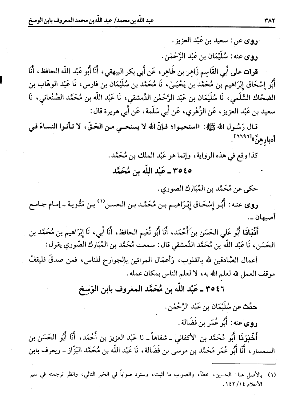 (1) بالأصل هنا: الحسين خطأ والصواب ما أثبت وسترد صوابا في الخبر التالي وانظر ترجمته في سير الأعلام 14 / 142
