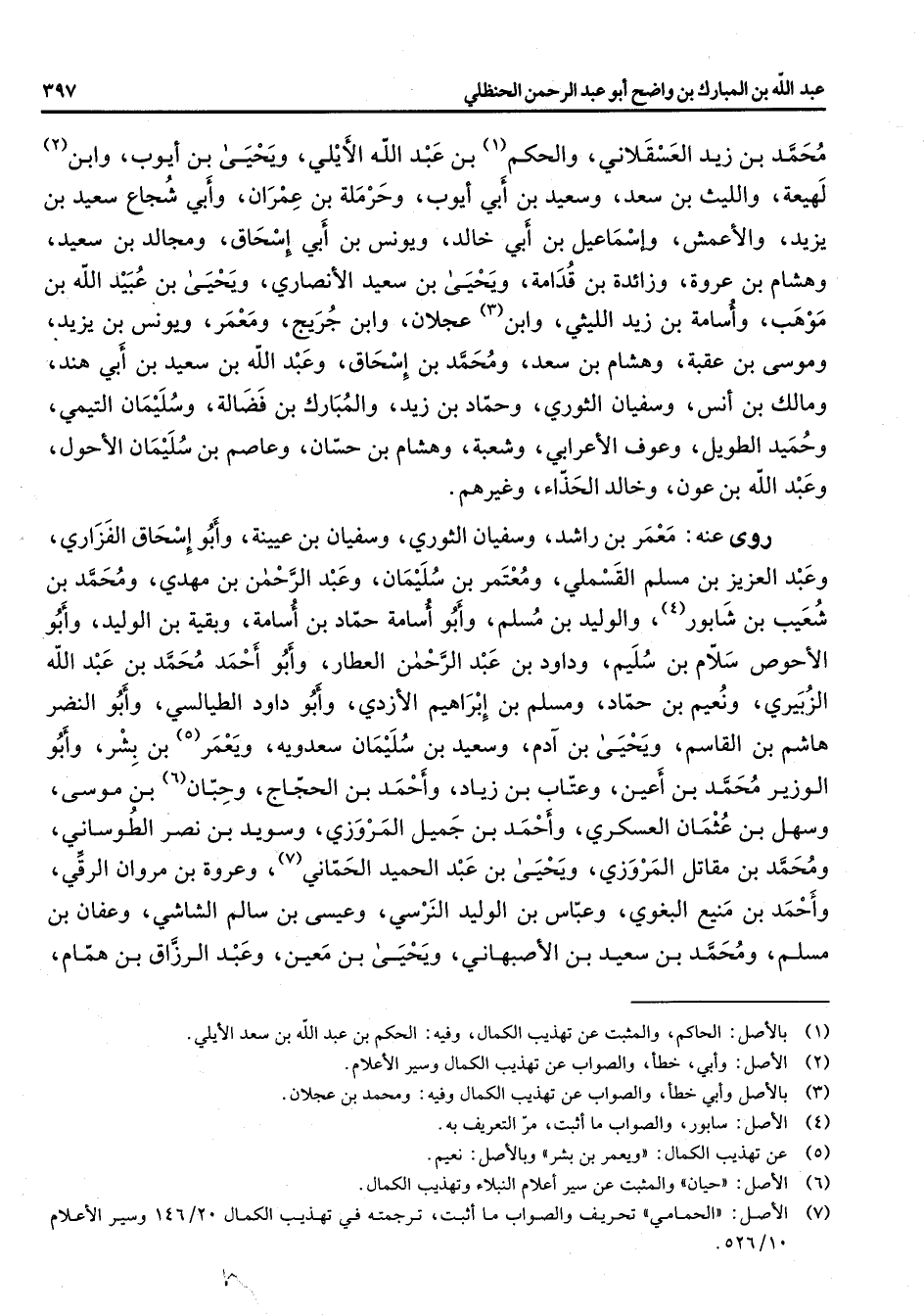 (7) الأصل: " الحمامي " تحريف والصواب ما أثبت ترجمته في تهذيب الكمال 20 / 146 وسير الأعلام 10 / 526