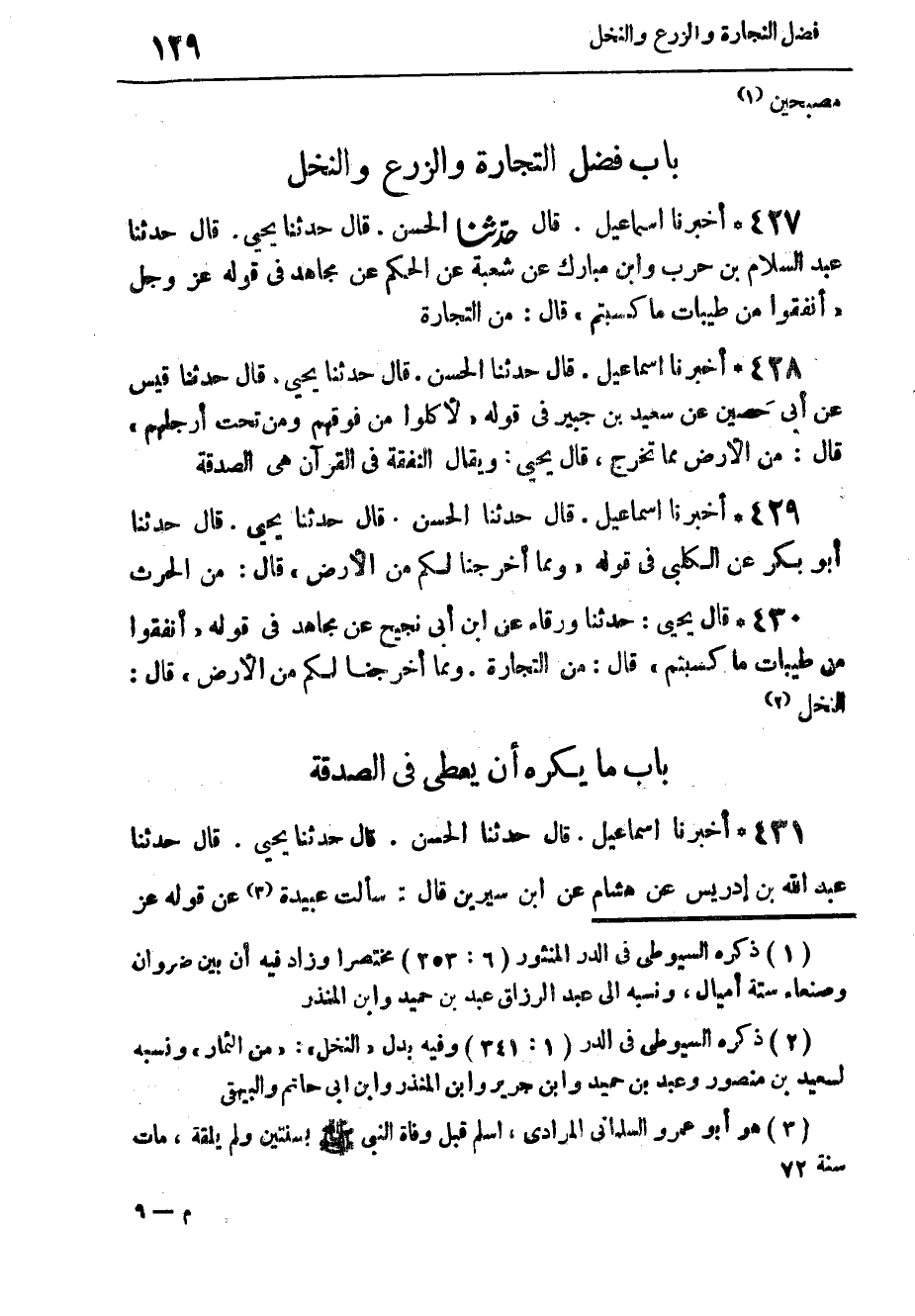 427 - أَخْبَرَنَا إِسْمَاعِيلُ، قَالَ: حَدَّثَنَا الْحَسَنُ، قَالَ: حَدَّثَنَا يَحْيَى، قَالَ: حَدَّثَنَا عَبْدُ السَّلَامِ بْنُ حَرْبٍ، وَابْنُ مُبَارَكٍ، عَنْ شُعْبَةَ، عَنِ الْحَكَمِ، عَنْ مُجَاهِدٍ، فِي قَوْلِهِ عَزَّ وَجَلَّ: {§أَنْفِقُوا مِنْ طَيِّبَاتِ مَا كَسَبْتُمْ} [البقرة: 267] قَالَ: " مِنَ التِّجَارَةِ "