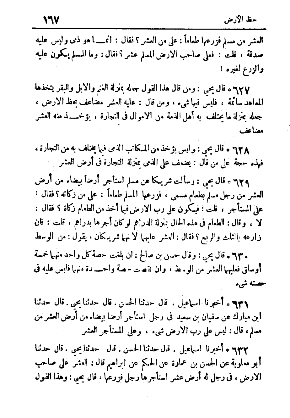 631 - أَخْبَرَنَا إِسْمَاعِيلُ، قَالَ: حَدَّثَنَا الْحَسَنُ، قَالَ: حَدَّثَنَا يَحْيَى، قَالَ: حَدَّثَنَا ابْنُ مُبَارَكٍ، عَنْ سُفْيَانَ بْنِ سَعِيدٍ فِي رَجُلٍ اسْتَأْجَرَ أَرْضًا بَيْضَاءَ مِنْ أَرْضِ الْعُشْرِ مِنْ مُسْلِمٍ، قَالَ: " §لَيْسَ عَلَى رَبِّ الْأَرْضِ شَيْءٌ، وَعَلَى الْمُسْتَأْجِرِ الْعُشْرُ "