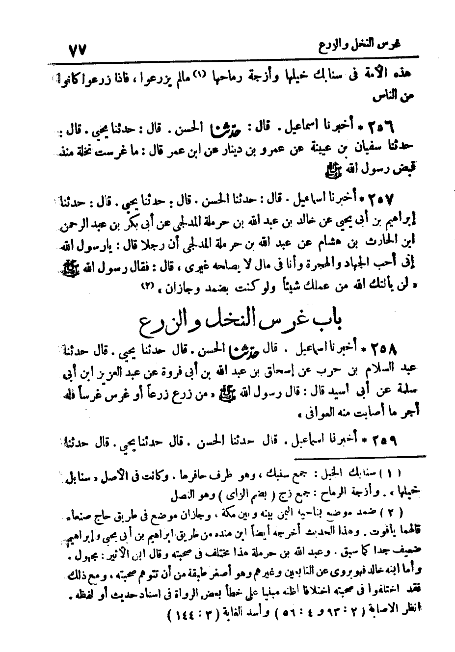 258 - أَخْبَرَنَا إِسْمَاعِيلُ، قَالَ: حَدَّثَنَا الْحَسَنُ، قَالَ: حَدَّثَنَا يَحْيَى، قَالَ: حَدَّثَنَا عَبْدُ السَّلَامِ بْنُ حَرْبٍ، عَنْ إِسْحَاقَ بْنِ عَبْدِ اللَّهِ بْنِ أَبِي فَرْوَةَ، عَنْ عَبْدِ الْعَزِيزِ بْنِ أَبِي سَلَمَةَ، عَنْ أَبِي أُسَيْدٍ، قَالَ: قَالَ رَسُولُ اللَّهِ صَلَّى اللهُ عَلَيْهِ وَسَلَّمَ: " §مَنْ زَرَعَ زَرْعًا، أَوْ غَرَسَ غَرْسًا فَلَهُ أَجْرٌ مَا أَصَابَتْ مِنْهُ الْعَوَافِي "