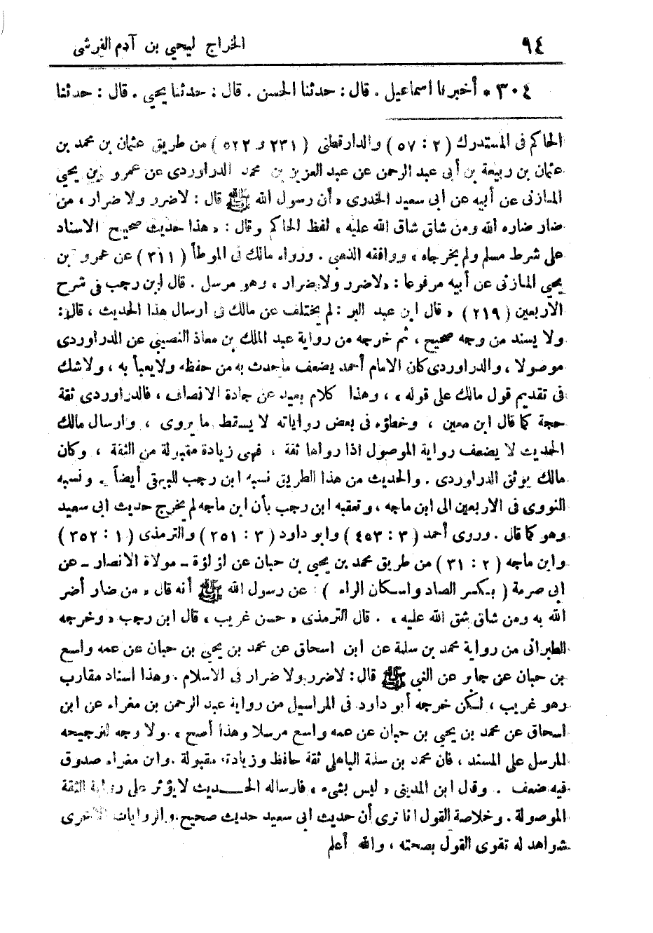 أَخْبَرَنَا إِسْمَاعِيلُ، قَالَ: حَدَّثَنَا الْحَسَنُ، قَالَ: حَدَّثَنَا يَحْيَى، قَالَ: حَدَّثَنَا -[95]- وَرْقَاءُ، عَنِ ابْنِ أَبِي نَجِيحٍ، عَنْ مُجَاهِدٍ، قَالَ: كَانَتْ نَخْلَةٌ لِرَجُلٍ فِي حَائِطِ قَوْمٍ، فَأَرَادُوهُ أَنْ يَبِيعَهُمْ فَأَبَى، فَذُكِرَ ذَلِكَ لِرَسُولِ اللَّهِ صَلَّى اللهُ عَلَيْهِ وَسَلَّمَ، فَقَالَ: " §لَا ضَرَرَ فِي الْإِسْلَامِ "