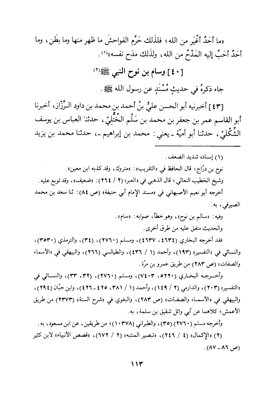 (40) وسام بن نوح النَّبِي صلى الله عَلَيْهِ وَسلم جَاءَ ذكره فِي حَدِيث مُسْند عَن رَسُول الله صلى الله