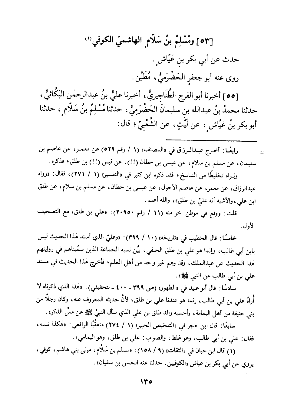 (53) وَمُسلم بن سَلام الْهَاشِمِي الْكُوفِي حدث عَن أبي بكر بن عَيَّاش روى عَنهُ أَبُو جَعْفَر الْحَضْرَمِيّ مطين