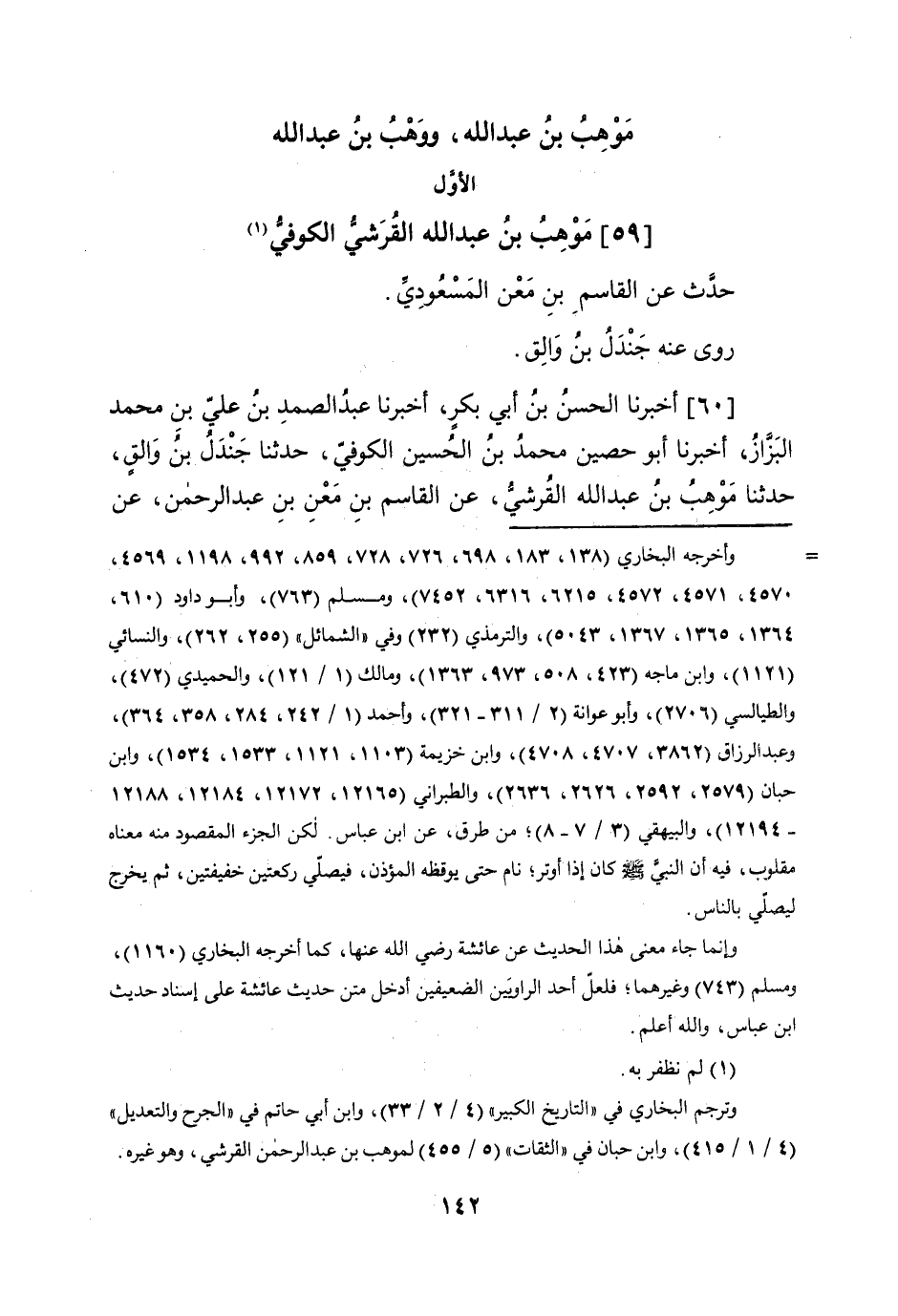 (59) موهب بن عبد الله الْقرشِي الْكُوفِي حدث عَن الْقَاسِم بن معن المَسْعُودِيّ روى عَنهُ جندل بن والق