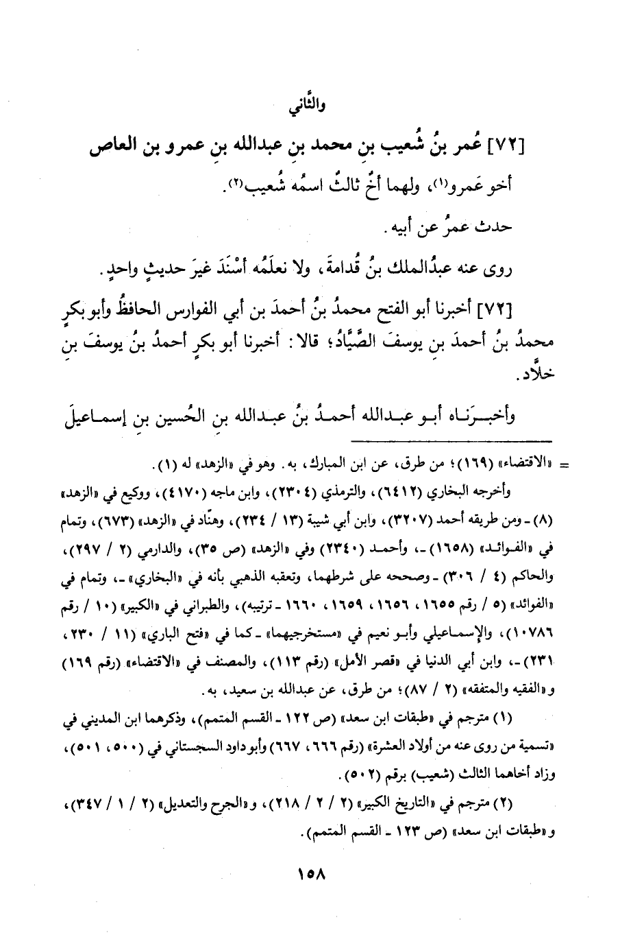 (72) عمر بن شُعَيْب بن مُحَمَّد بن عبد الله بن عَمْرو بن الْعَاصِ أَخُو عَمْرو وَلَهُمَا أَخ ثَالِث اسْمه