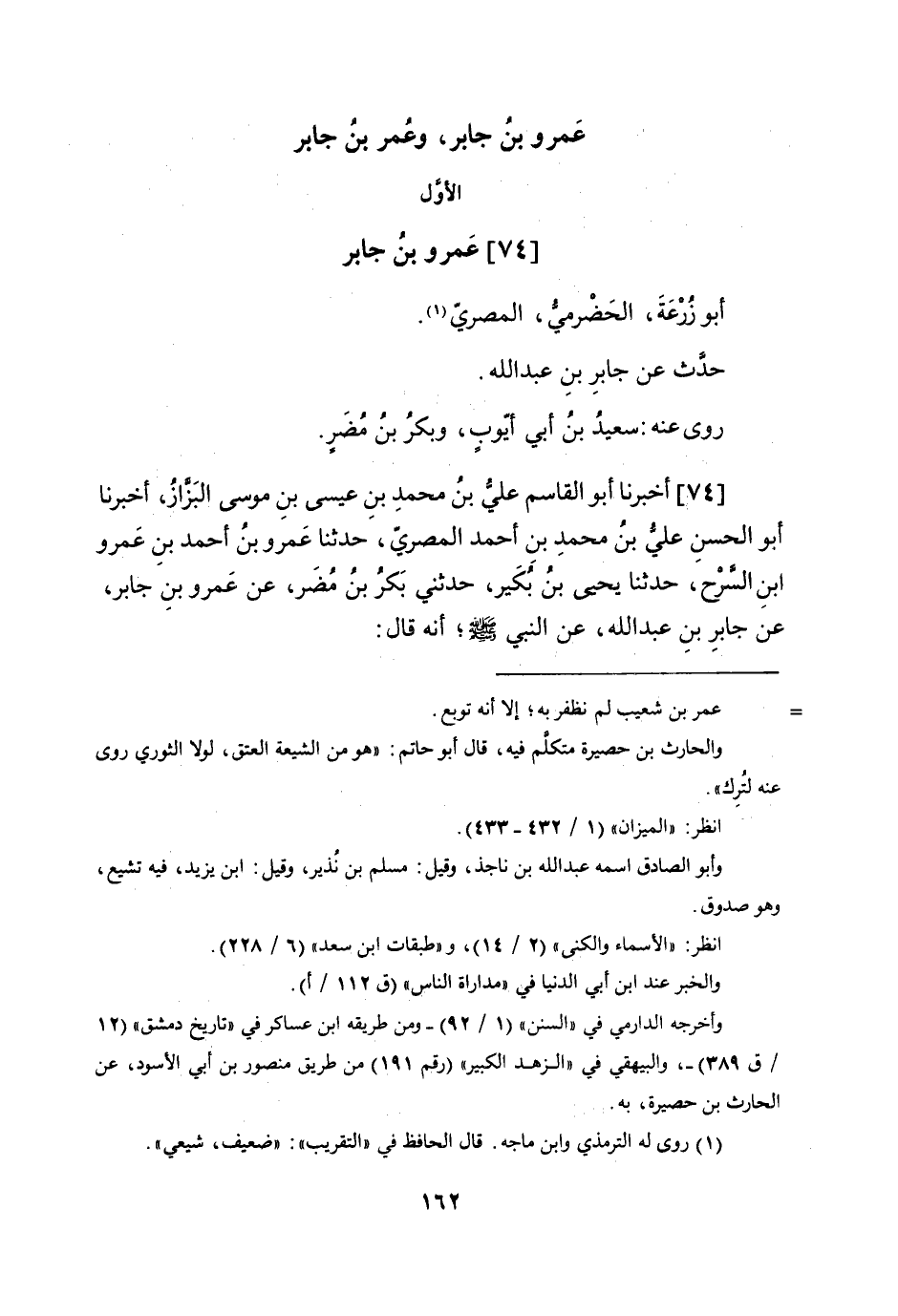 عَمْرو بن جَابر وَعمر بن جَابر الأول (74) عَمْرو بن جَابر أَبُو زرْعَة الْحَضْرَمِيّ الْمصْرِيّ حدث عَن جَابر
