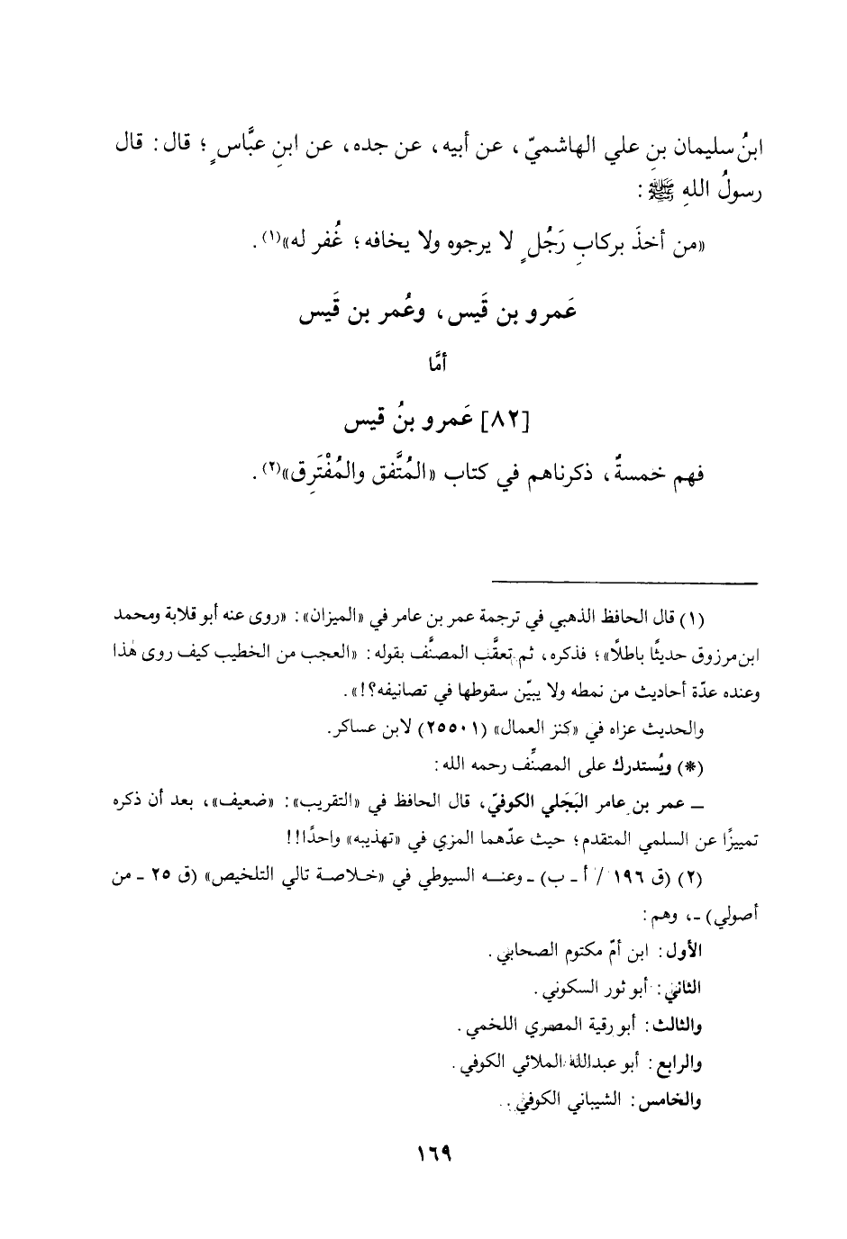(82) عَمْرو بن قيس فهم خَمْسَة ذَكَرْنَاهُمْ فِي كتاب الْمُتَّفق والمفترق