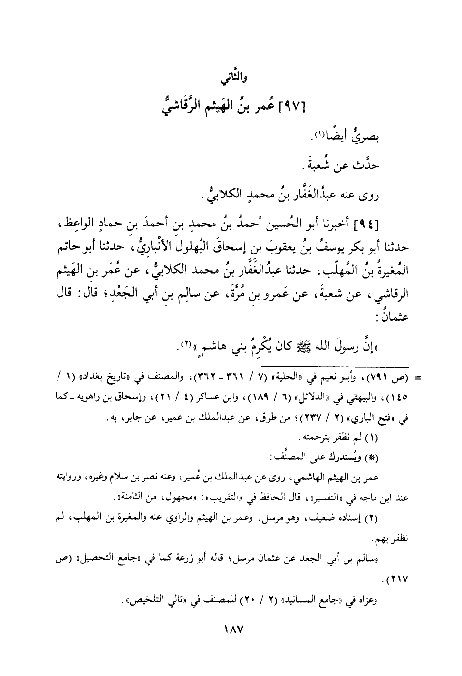 (97) عمر بن الْهَيْثَم الرقاشِي بَصرِي أَيْضا حدث عَن شُعْبَة روى عَنهُ عبد الْغفار بن مُحَمَّد الْكلابِي