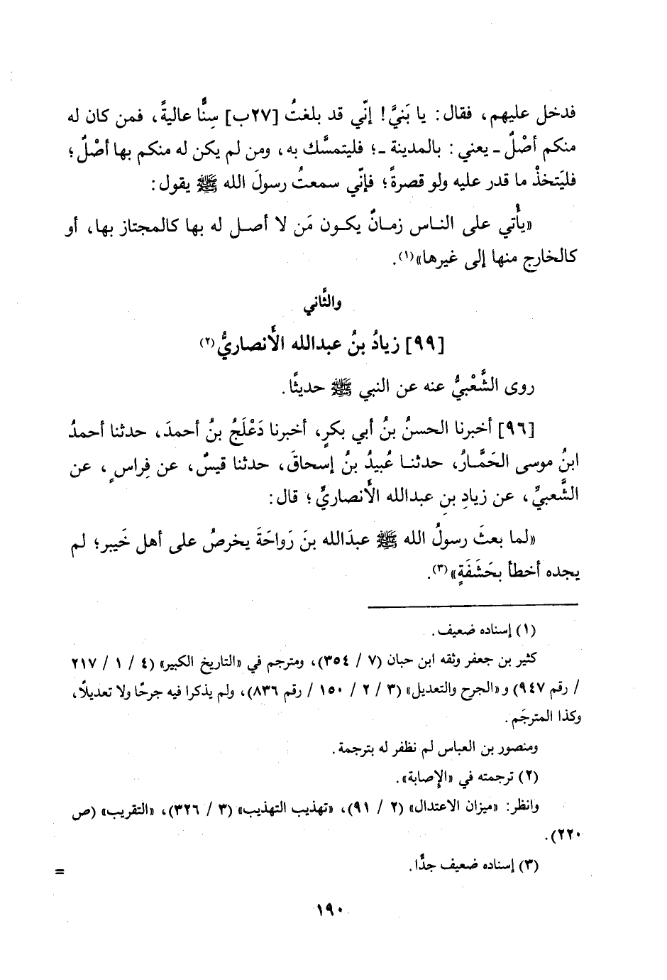 (99) زِيَاد بن عبد الله الْأنْصَارِيّ روى الشّعبِيّ عَنهُ عَن النَّبِي صلى الله عَلَيْهِ وَسلم حَدِيثا