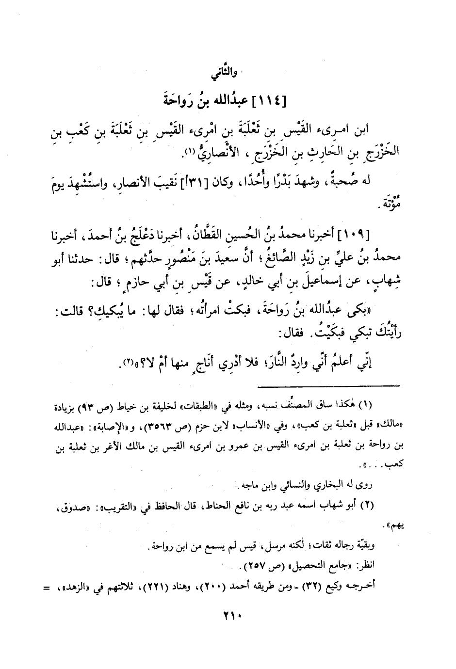 (114) عبد الله بن رَوَاحَة ابْن امْرِئ الْقَيْس بن ثَعْلَبَة بن امْرِئ الْقَيْس بن ثَعْلَبَة بن كَعْب بن الْخَزْرَج