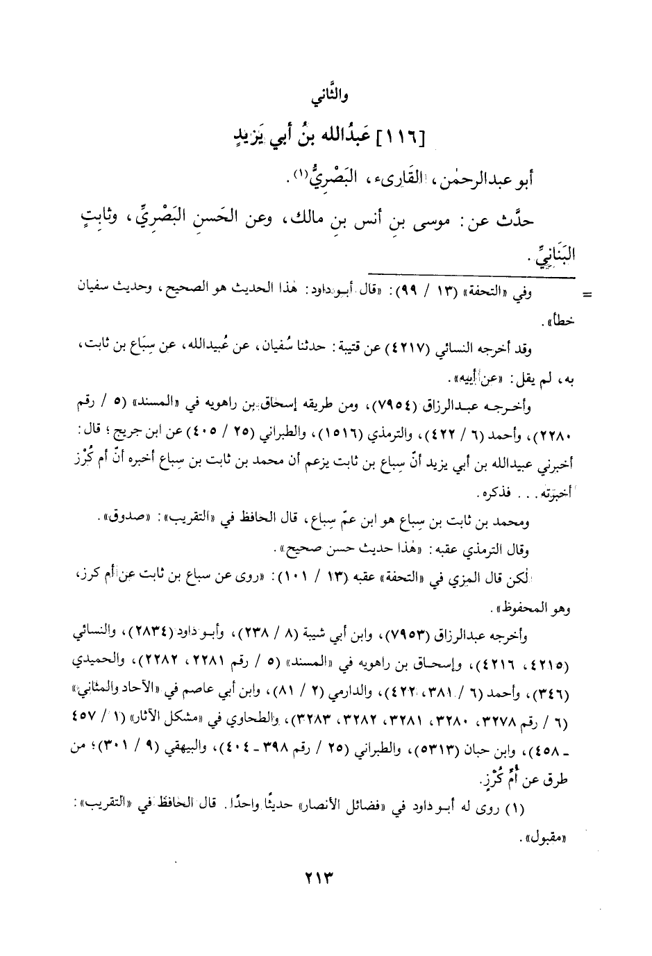 (116) عبد الله بن أبي يزِيد أَبُو عبد الرَّحْمَن الْقَارئ الْبَصْرِيّ حدث عَن مُوسَى بن أنس بن مَالك وَعَن
