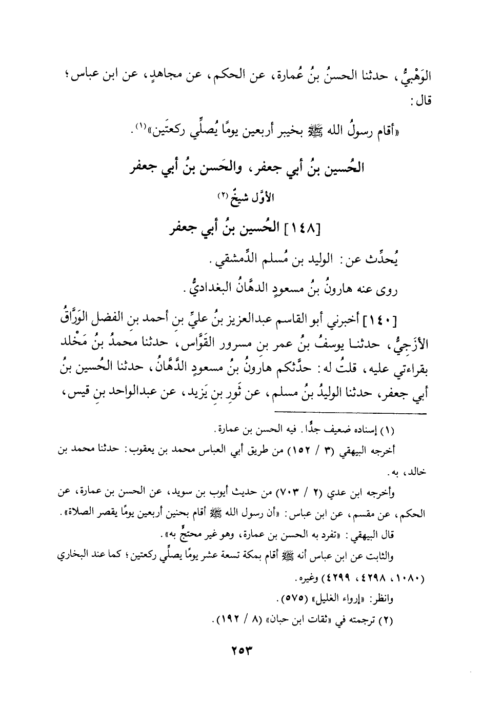 (148) الْحُسَيْن بن أبي جَعْفَر يحدث عَن الْوَلِيد بن مُسلم الدِّمَشْقِي روى عَنهُ هَارُون بن مَسْعُود الدهان الْبَغْدَادِيّ