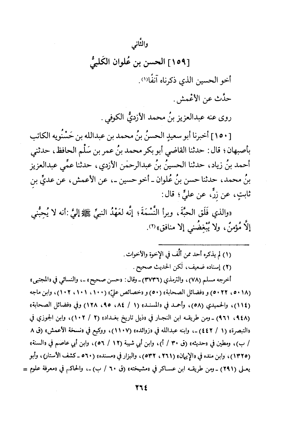 150 - أخبرنَا أَبُو سعيد الْحسن بن مُحَمَّد بن عبد الله بن حسنويه الْكَاتِب بأصبهان قَالَ حَدثنَا القَاضِي أَبُو بكر مُحَمَّد بن عمر بن سلم الْحَافِظ حَدثنِي أَحْمد بن زِيَاد حَدثنَا الْحُسَيْن بن عبد الرَّحْمَن الْأَزْدِيّ حَدثنَا عمي عبد الْعَزِيز بن مُحَمَّد حَدثنَا حسن بن علوان أَخُو حُسَيْن عَن الْأَعْمَش عَن عدي بن ثَابت عَن زر عَن عَليّ قَالَ وَالَّذِي فلق الْحبَّة وبرأ النَّسمَة إِنَّه لعهد النَّبِي صلى الله عَلَيْهِ وَسلم إِلَيّ أَنه لَا يحبني إِلَّا مُؤمن وَلَا يبغضني إِلَّا مُنَافِق