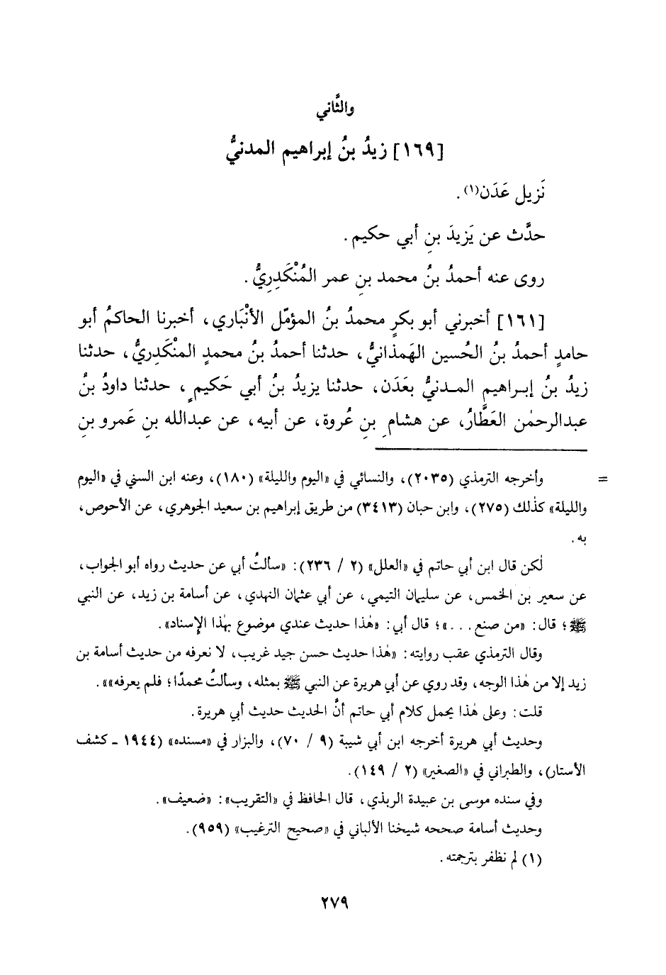 (169) زيد بن إِبْرَاهِيم الْمدنِي نزيل عدن حَدثنَا عَن يزِيد بن أبي حَكِيم روى عَنهُ أَحْمد بن مُحَمَّد بن