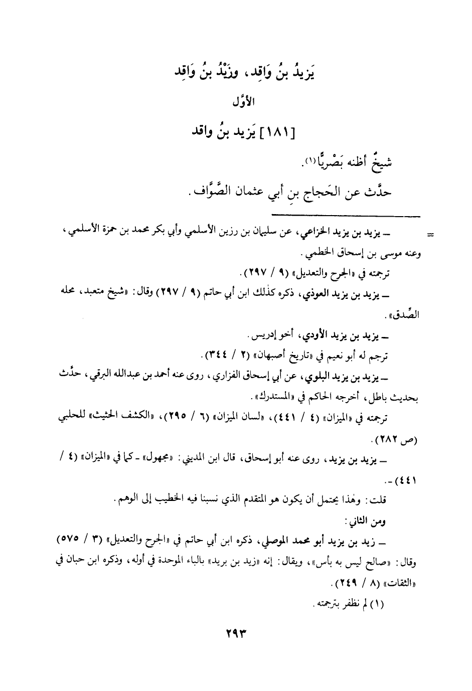 (181) يزِيد بن وَاقد شيخ أَظُنهُ بصريا حدث عَن الْحجَّاج بن أبي عُثْمَان الصَّواف