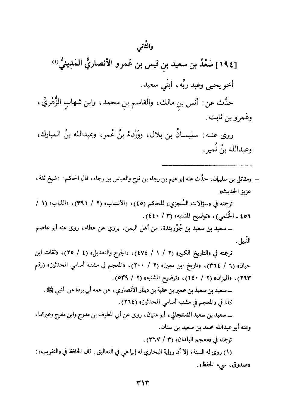 (194) سعد بن سعيد بن قيس بن عَمْرو الْأنْصَارِيّ الْمَدِينِيّ أَخُو يحيى وَعبد ربه ابْني سعيد حدث عَن أنس