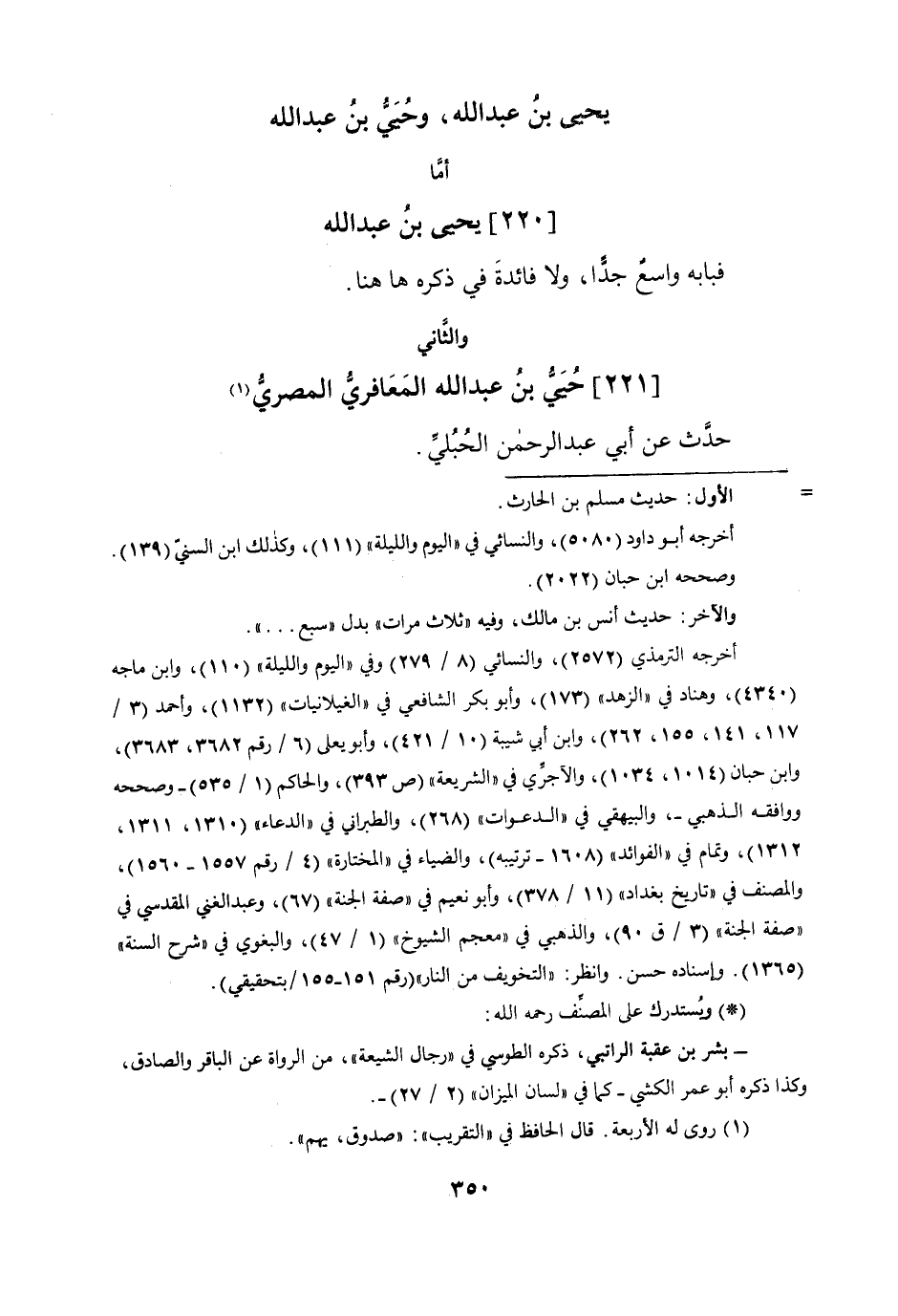 (220) يحيى بن عبد الله فبابه وَاسع جدا وَلَا فَائِدَة فِي ذكره هَا هُنَا وَالثَّانِي
