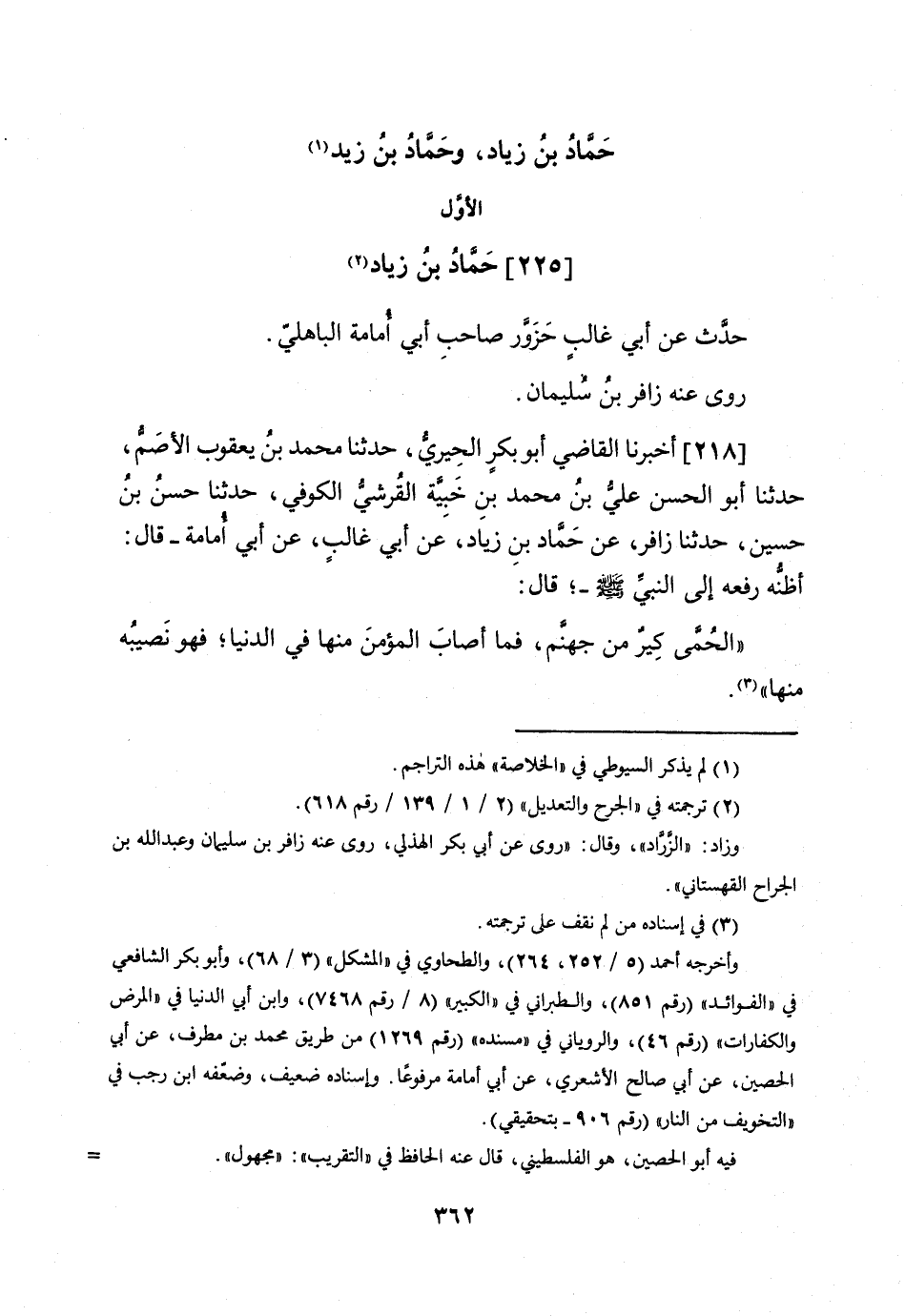 218 - أخبرنَا القَاضِي أَبُو بكر الْحِيرِي حَدثنَا مُحَمَّد بن يَعْقُوب الْأَصَم حَدثنَا أَبُو الْحسن عَليّ بن مُحَمَّد بن خبية الْقرشِي الْكُوفِي حَدثنَا حسن بن حُسَيْن حَدثنَا زَافِر عَن حَمَّاد بن زِيَاد عَن أبي غَالب عَن ابي امامة قَالَ أَظُنهُ رَفعه إِلَى النَّبِي صلى الله عَلَيْهِ وَسلم قَالَ
