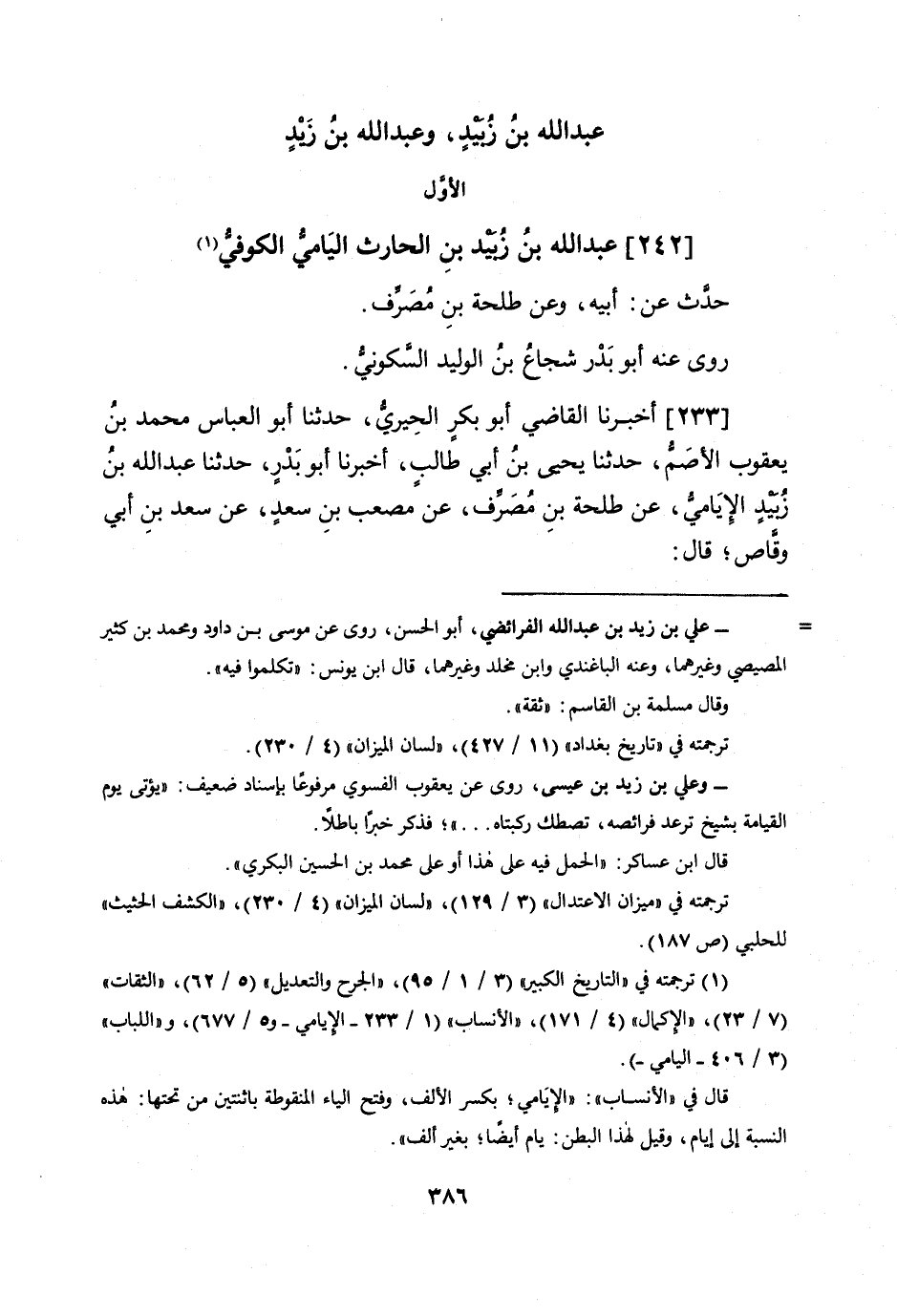 242 - عبد الله بن زبيد بن الْحَارِث اليامي الْكُوفِي