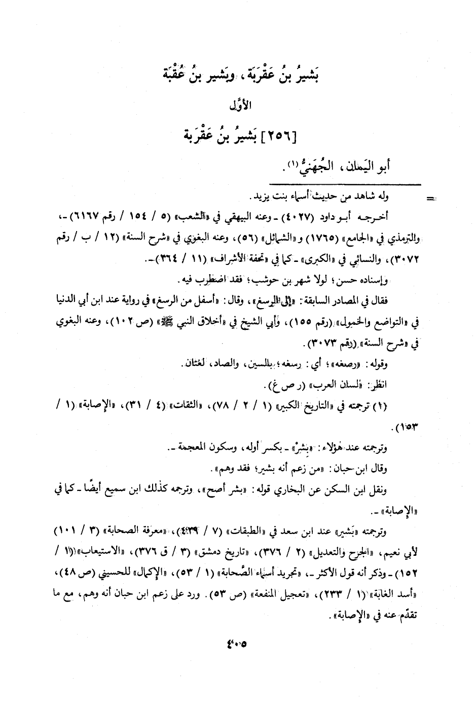 الأول [256] بشير بن عقربة ابو الْيَمَان الْجُهَنِيّ