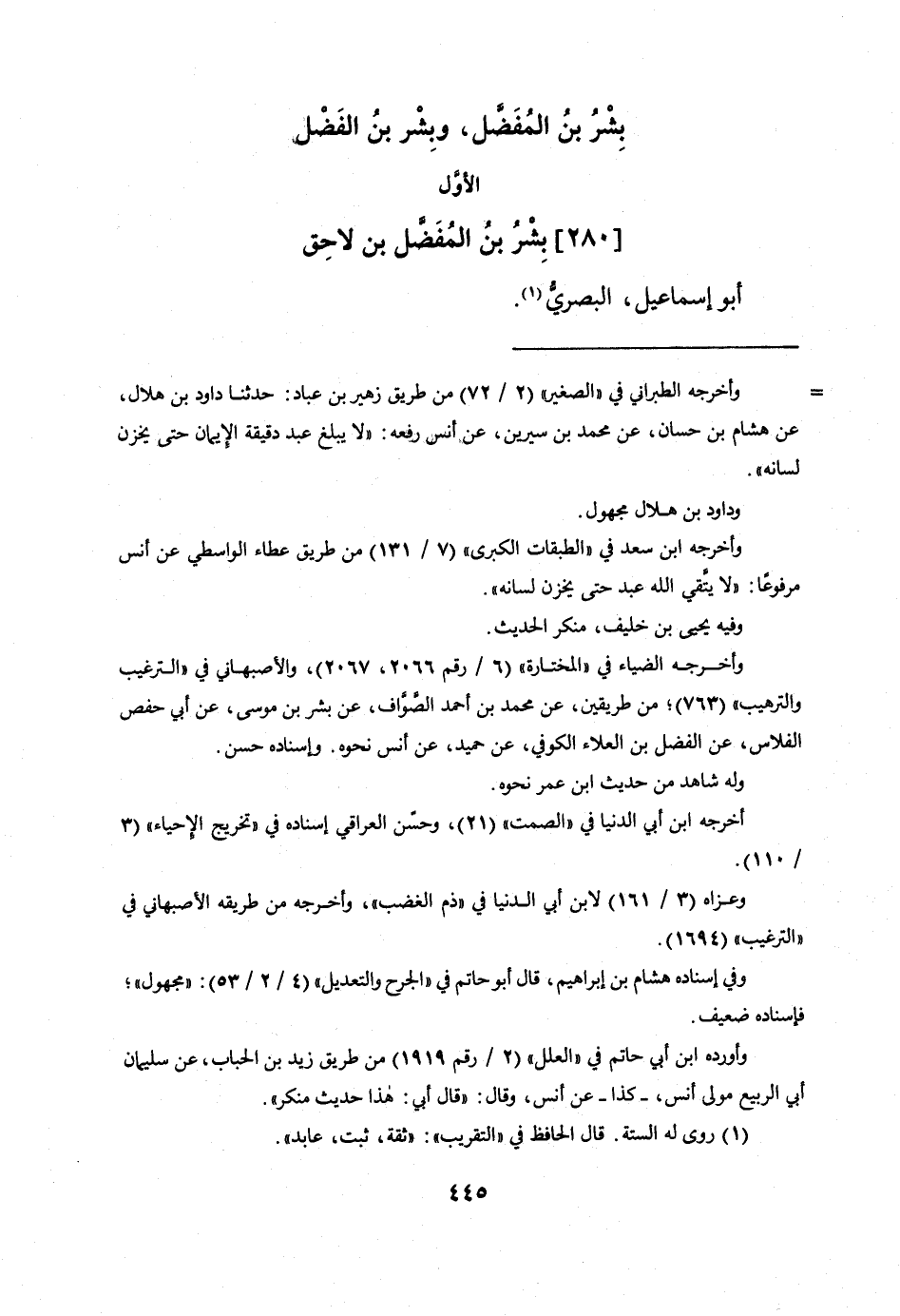 الأول [280] بشر بن الْمفضل بن لَاحق