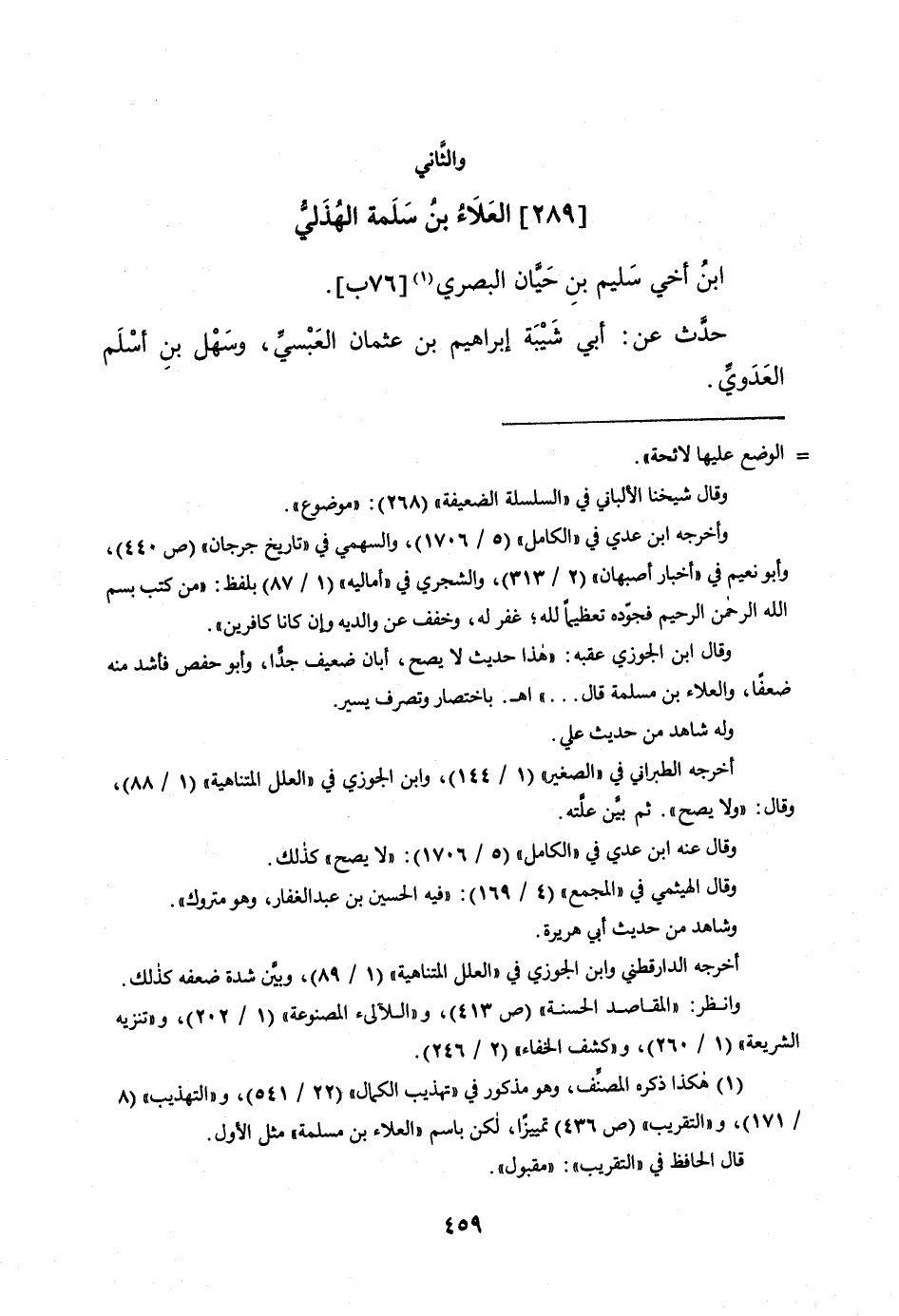 وَالثَّانِي [289] الْعَلَاء بن سَلمَة الْهُذلِيّ ابْن أخي سليم بن حَيَّان الْبَصْرِيّ