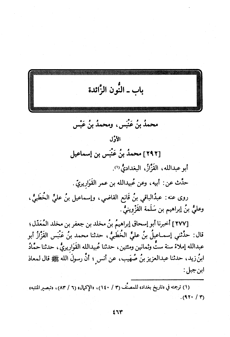 الأول [292] مُحَمَّد بن عَنْبَس بن إِسْمَاعِيل أَبُو عبد الله الْقَزاز الْبَغْدَادِيّ