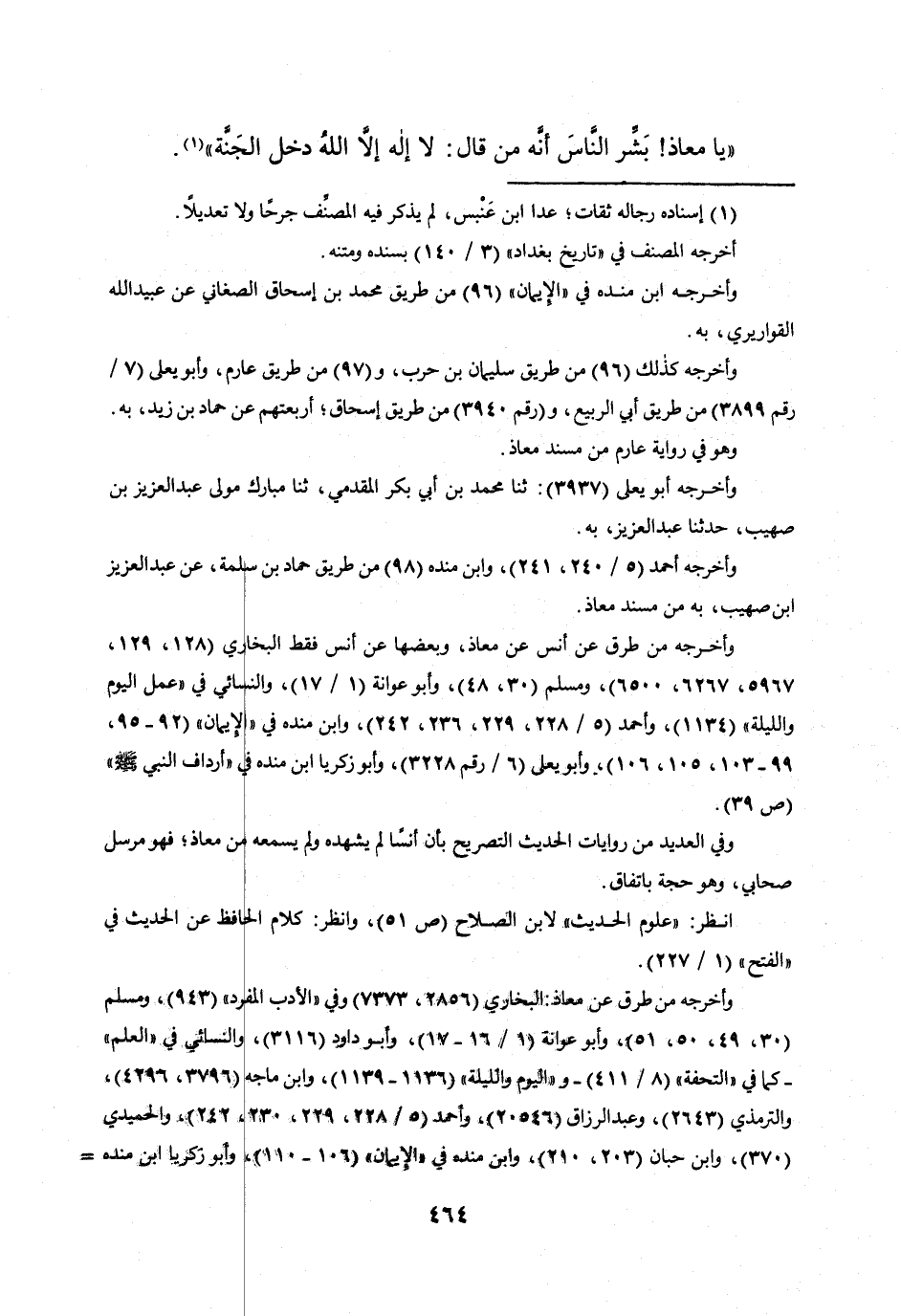 يَا معَاذ بشر النَّاس أَنه من قَالَ لَا إِلَه إِلَّا الله دخل الْجنَّة