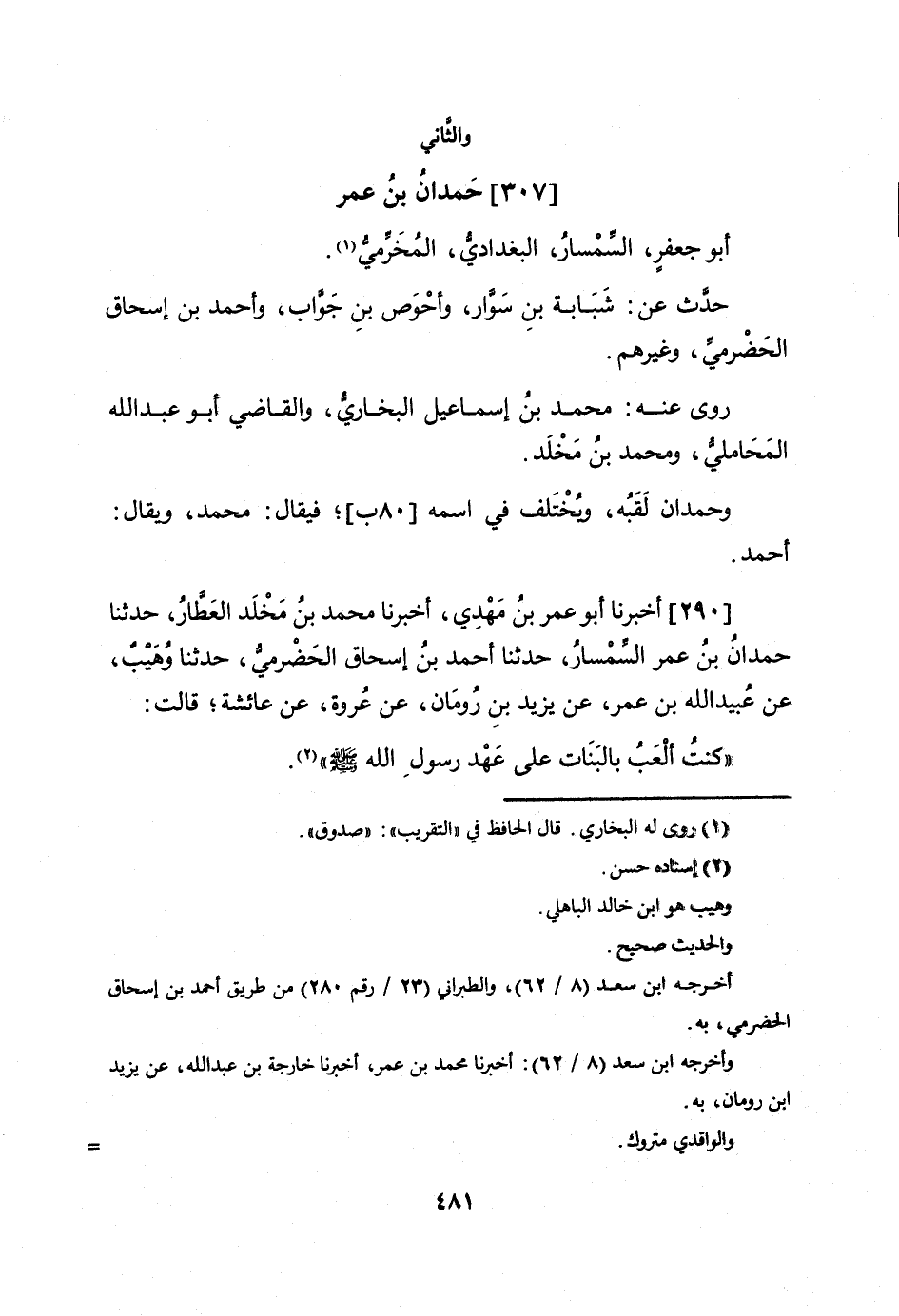 [307] حمدَان بن عمر أَبُو جَعْفَر السمسار الْبَغْدَادِيّ المخرمي