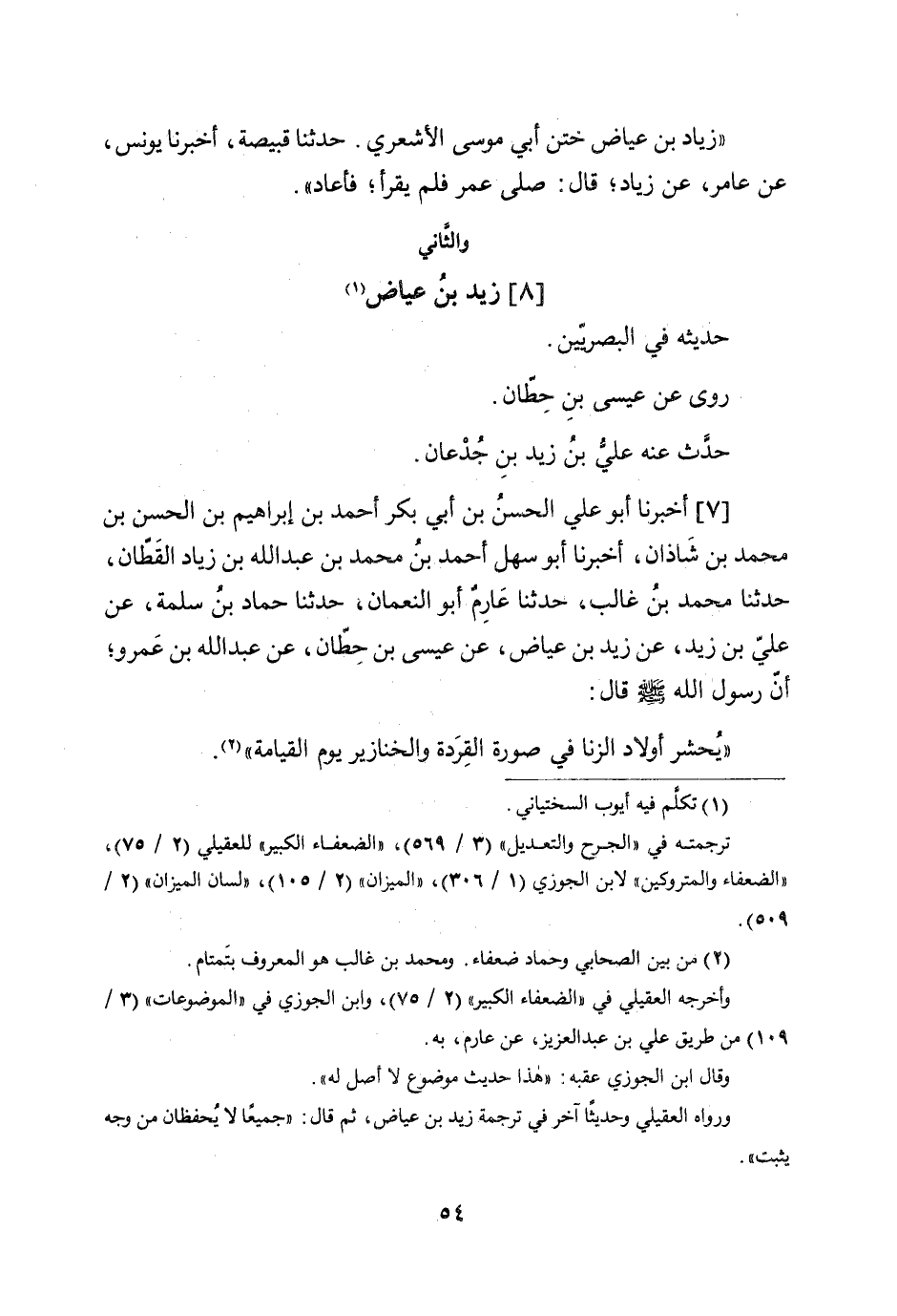 7 - أخبرنَا أَبُو عَليّ الْحسن بن أبي بكر أَحْمد بن إِبْرَاهِيم بن الْحسن بن مُحَمَّد بن شَاذان أخبرنَا أَبُو سهل أَحْمد بن مُحَمَّد بن عبد الله بن زِيَاد الْقطَّان حَدثنَا مُحَمَّد بن غَالب حَدثنَا عَارِم أَبُو النُّعْمَان حَدثنَا حَمَّاد بن سَلمَة عَن عَليّ بن زيد عَن زيد بن عِيَاض عَن عِيسَى بن حطَّان عَن عبد الله بن عَمْرو أَن رَسُول الله صلى الله عَلَيْهِ وَسلم قَالَ يحْشر أَوْلَاد الزِّنَا فِي صُورَة القردة والخنازير يَوْم الْقِيَامَة