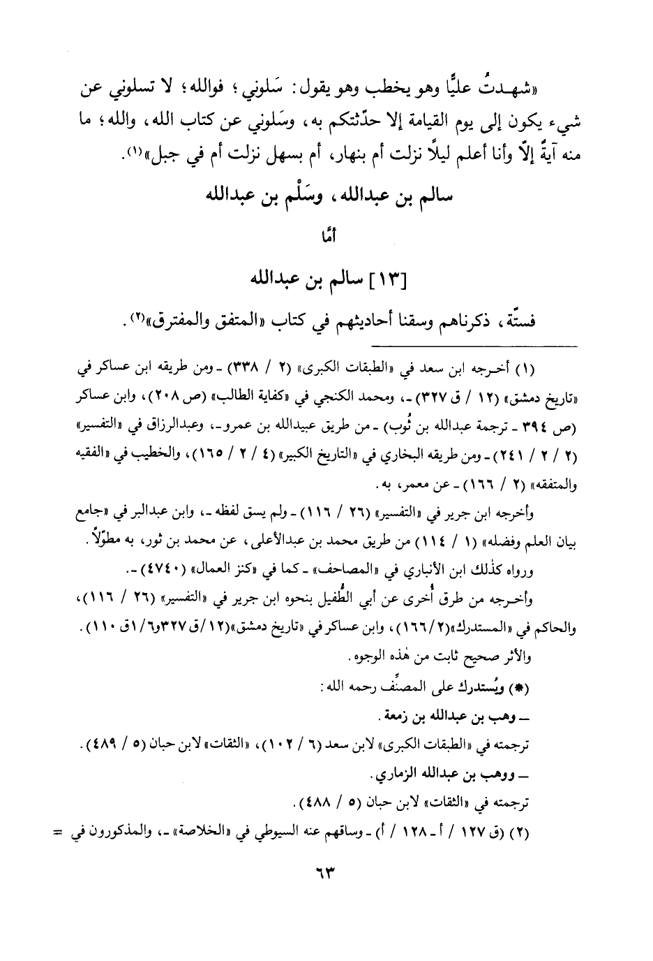 سَالم بن عبد الله وَسلم بن عبد الله أما (13) سَالم بن عبد الله فستة ذَكَرْنَاهُمْ وسقنا أَحَادِيثهم فِي كتاب الْمُتَّفق والمفترق