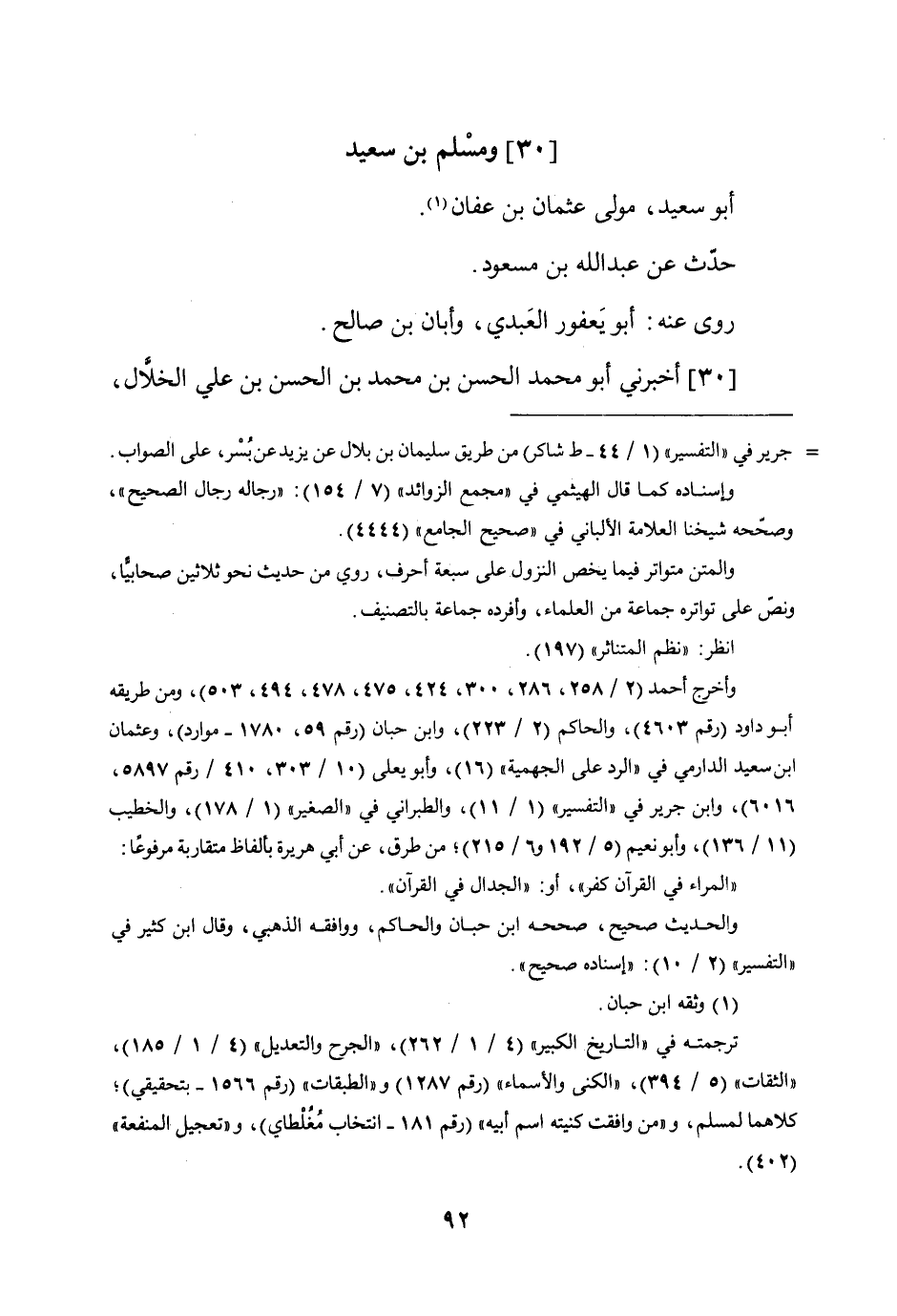(30) وَمُسلم بن سعيد أَبُو سعيد مولى عُثْمَان بن عَفَّان حدث عَن عبد الله بن مَسْعُود روى عَنهُ أَبُو