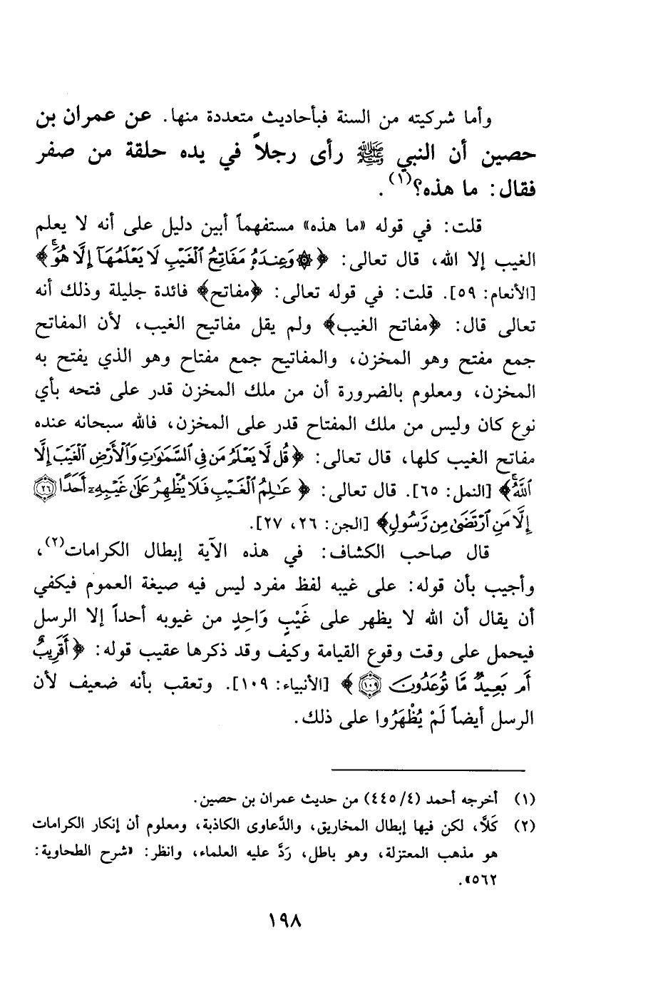 2 كَلاًّ، لكن فيها إبطال المخاريق، والدَّعاوي الكاذبة، ومعلوم أن إنكار الكرامات هو مذهب المعتزلة، وهو باطل، ردَّ عليه العلماء، وانظر: "شرح الطحاوية: 562".