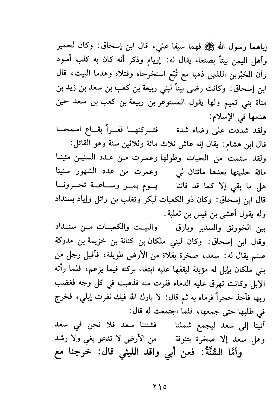 إياهما رسول الله صلى الله عليه وسلم فهما سيفا علي، قال ابن إسحاق: وكان لحمير وأهل اليمن بيتاً بصنعاء يقال له: إريام وذكر أنه كان به كلب أسود وأن الحَبْرين اللذين ذهبا مع تُبّع استخرجاه وقتلاه وهدما البيت، قال ابن إسحاق: وكانت رضى بيتاً لبني ربيعة بن كعب بن سعد بن زيد بن مناة بني تميم ولها يقول المستوعر بن ربيعة بن كعب بن سعد حين هدمها في الإسلام: