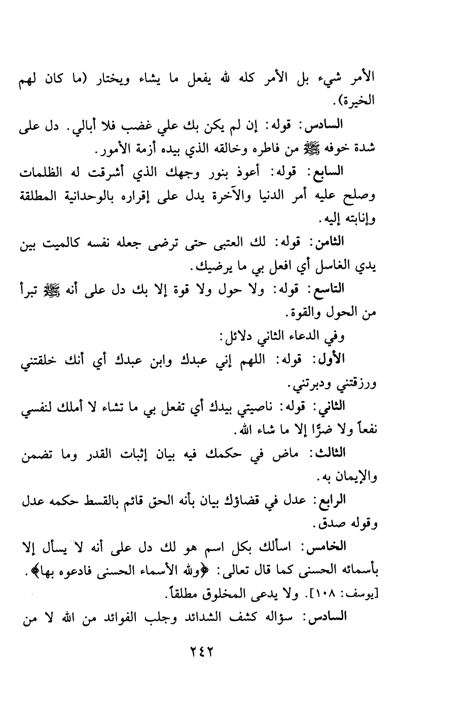التاسع: قوله: ولا حول ولا قوة إلا بك دل على أنه صلى الله عليه وسلم تبرأ من الحول والقوة.