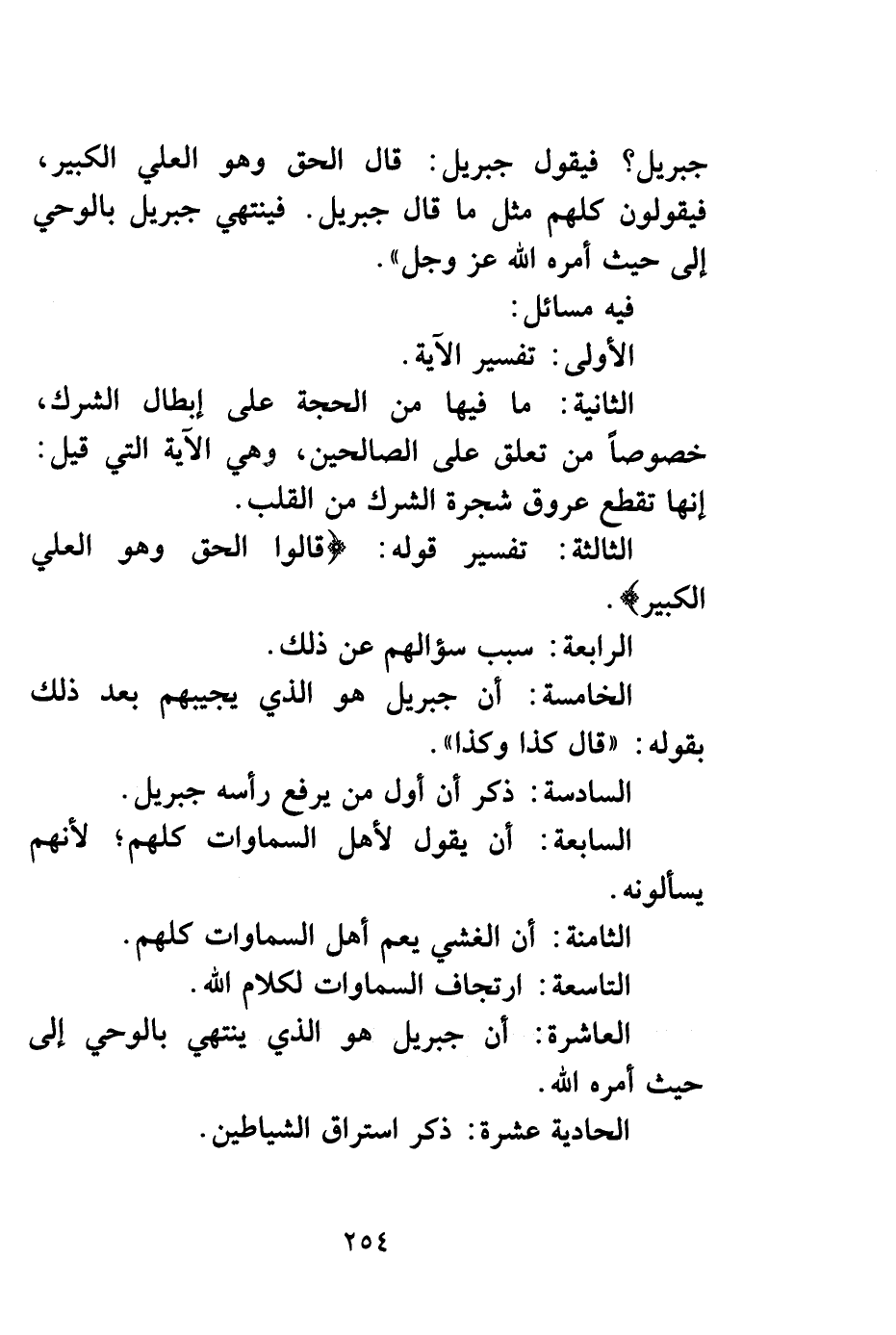 جبريل؟ فيقول جبريل: قال الحق وهو العلي الكبير، فيقولون كلهم مثل ما قال جبريل. فينتهي جبريل بالوحي إلى حيث أمره الله عز وجل".