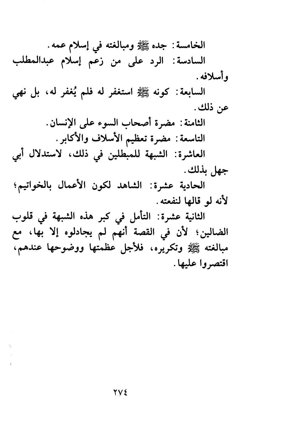 السادسة: الرد على من زعم إسلام عبد المطلب وأسلافه.