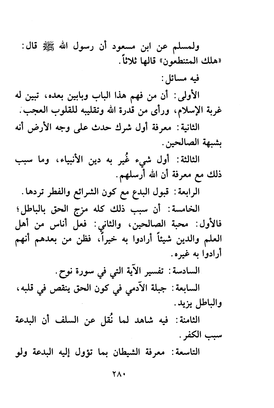 ولمسلم عن ابن مسعود أن رسول الله صلى الله عليه وسلم قال: "هلك المتنطعون" قالها ثلاثاً.