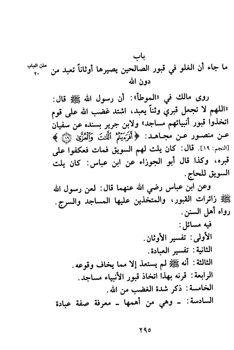 باب: ما جاء أن الغلو في قبور الصالحين يصيرها أوثاناً تعبد من دون الله