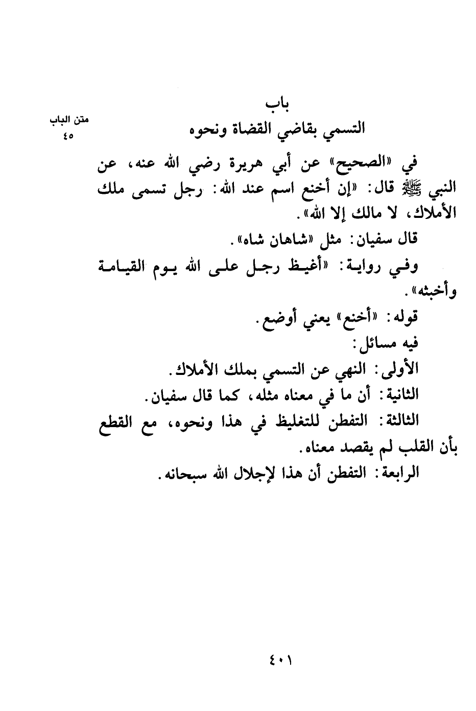 في "الصحيح" عن أبي هريرة رضي الله عنه، عن النبي صلى الله عليه وسلم قال: "إن أخنع اسم عند الله: رجل تسمى ملك الأملاك، لا مالك إلا الله".