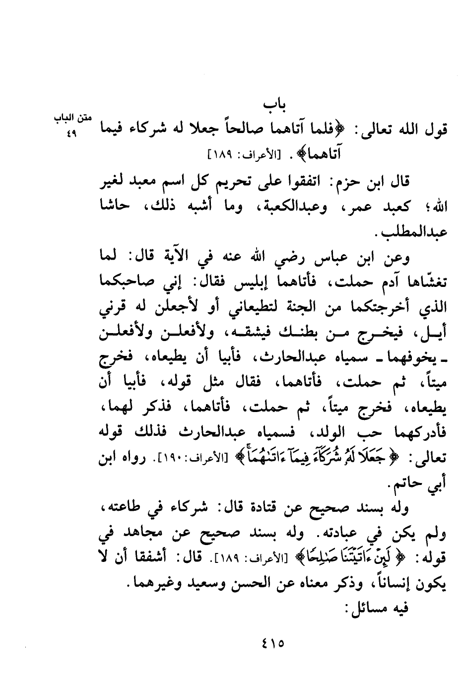 باب قول الله تعالى: {فَلَمَّا آتَاهُمَا صَالِحاً جَعَلا لَهُ شُرَكَاءَ فِيمَا آتَاهُمَا} [الأعراف: 190] .