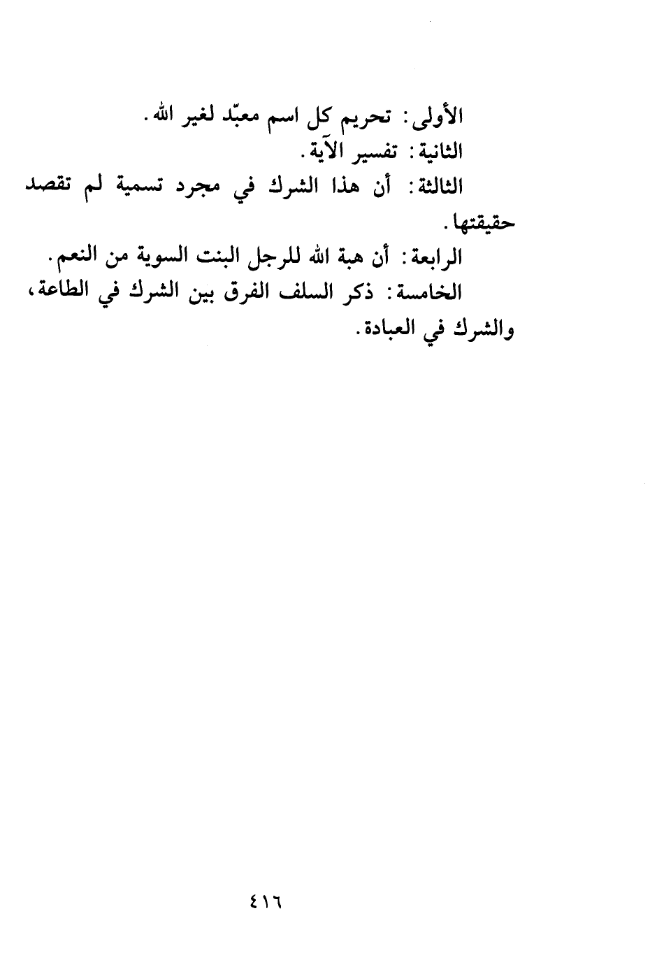 الأولى: تحريم كل اسم معبّد لغير الله.