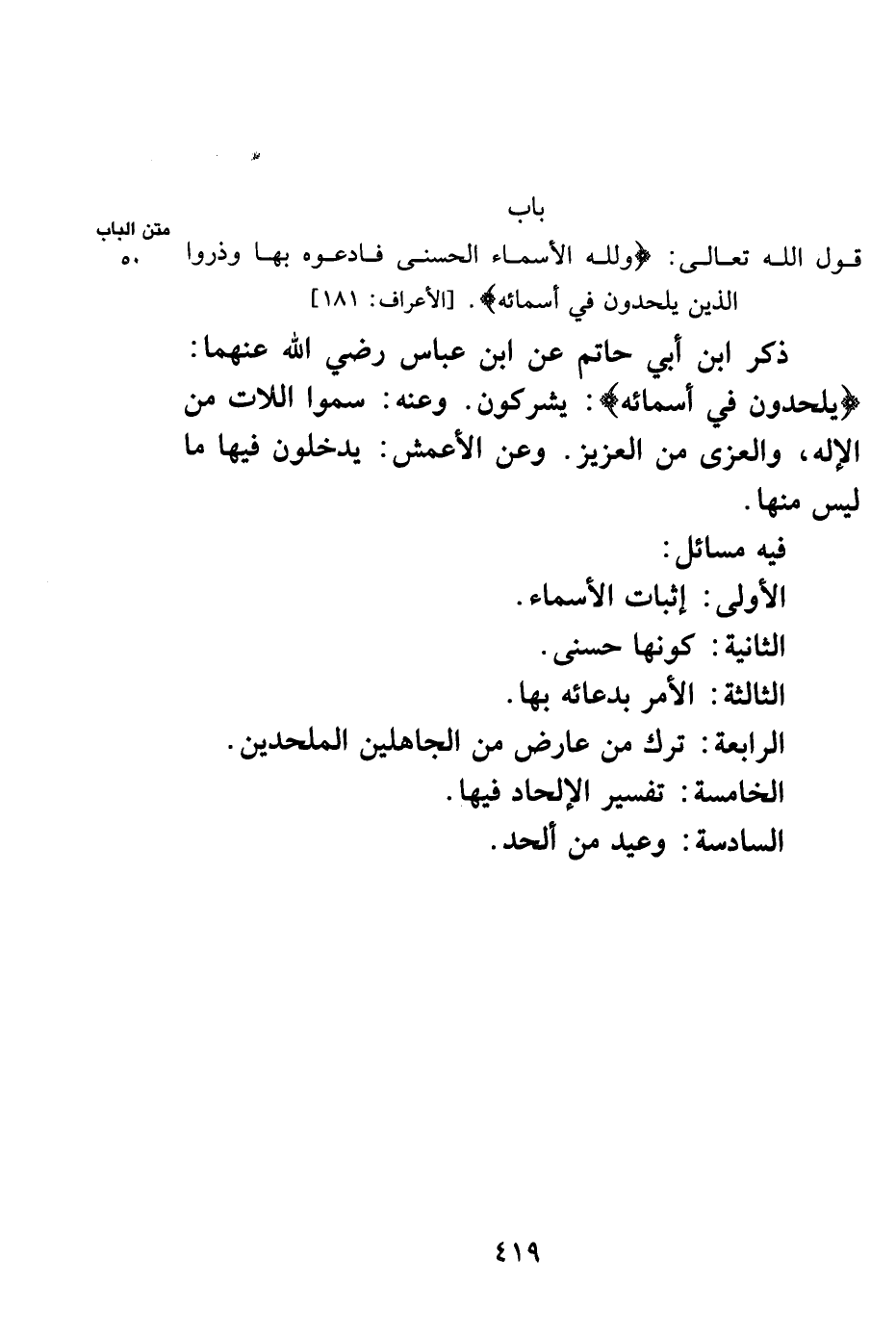 باب قول الله تعالى: {وَلِلَّهِ الْأَسْمَاءُ الْحُسْنَى فَادْعُوهُ بِهَا وَذَرُوا الَّذِينَ يُلْحِدُونَ فِي أَسْمَائِهِ} [الأعراف: 181] .